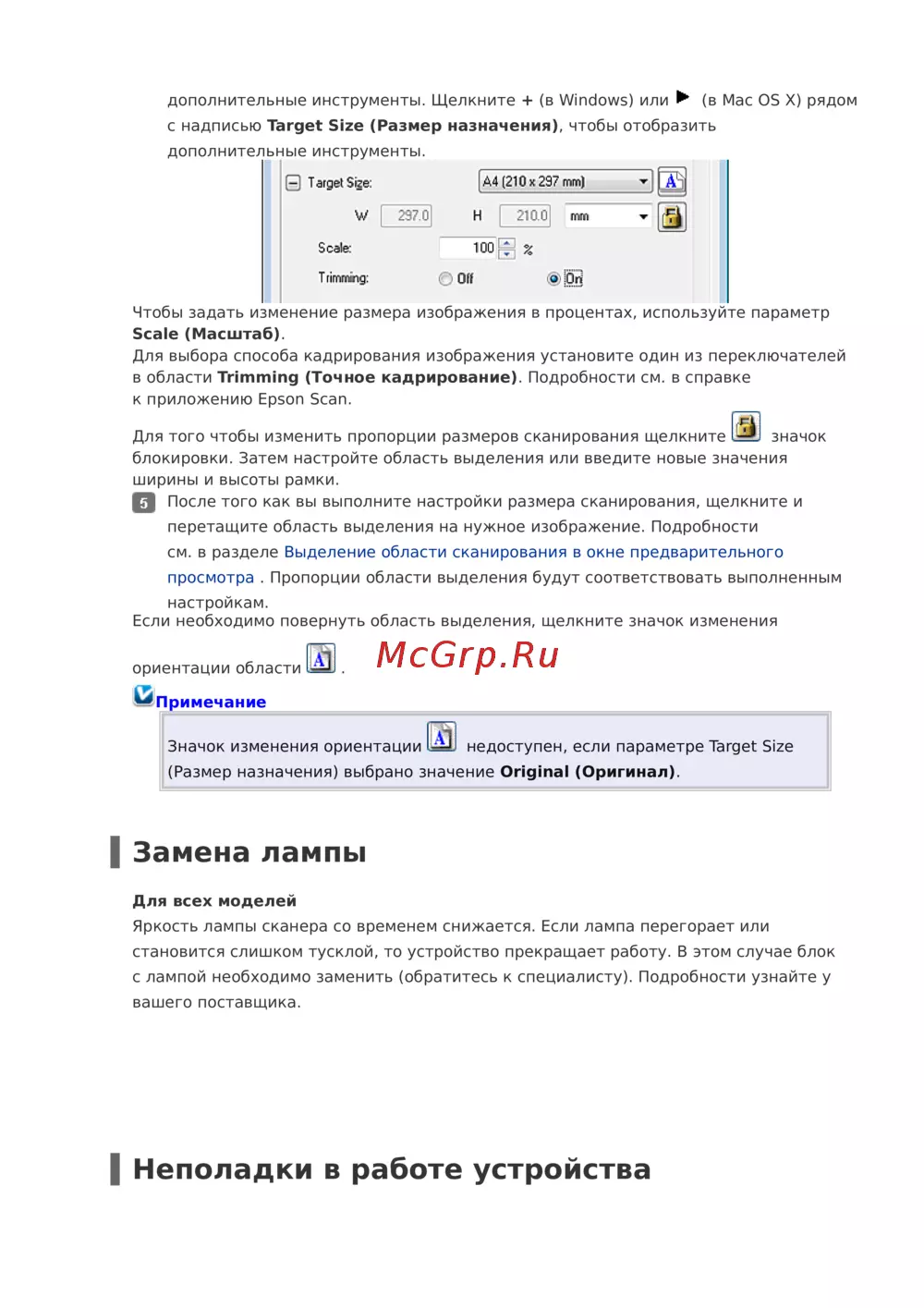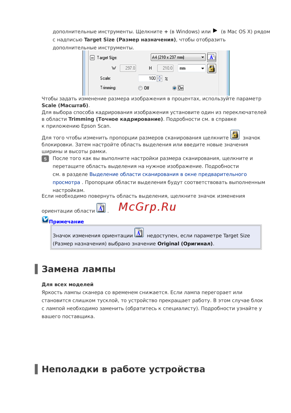 - Выделение области сканирования в окне предварительного просмотра p.103