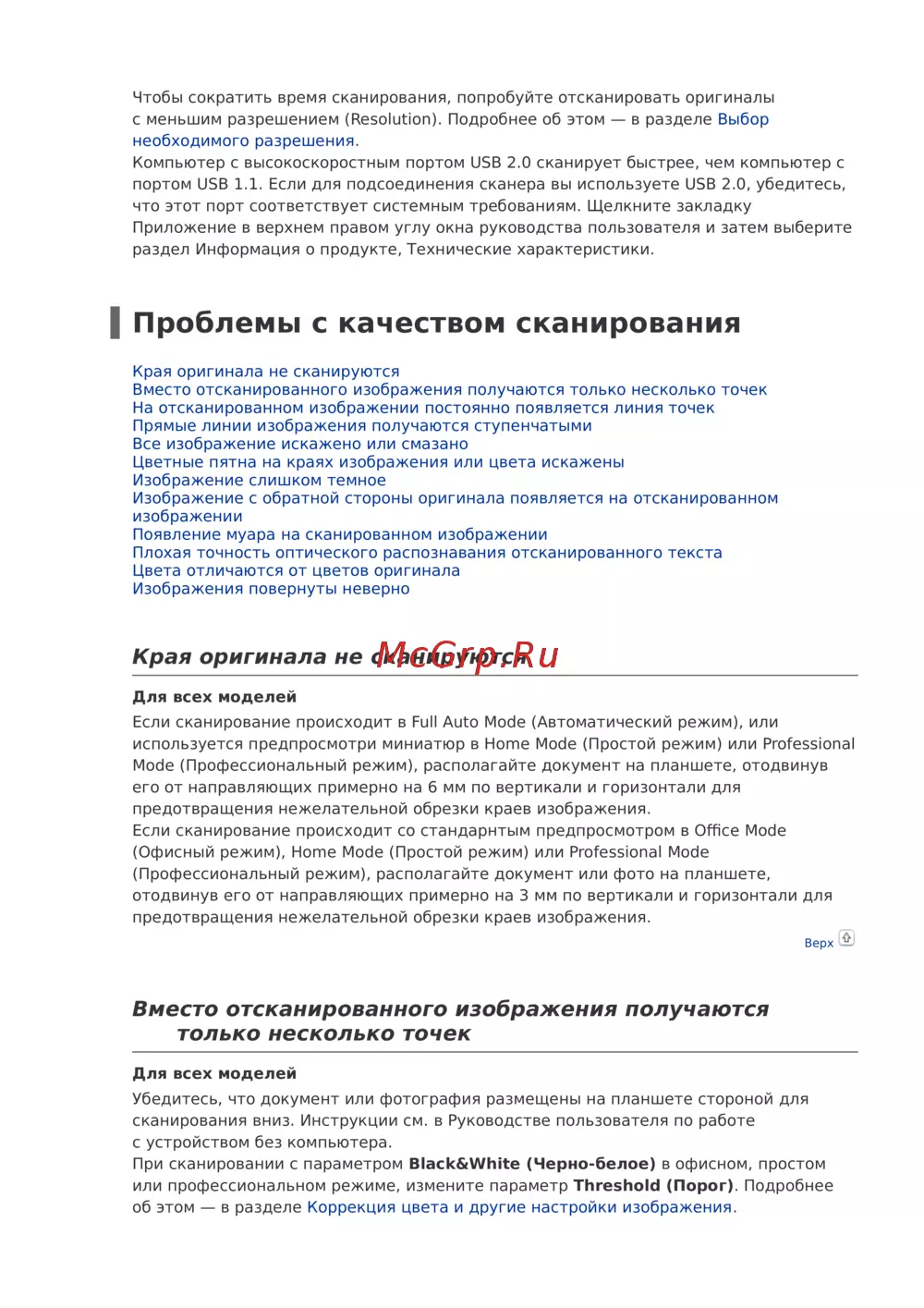 - На отсканированном изображении постоянно появляется линия точек p.128