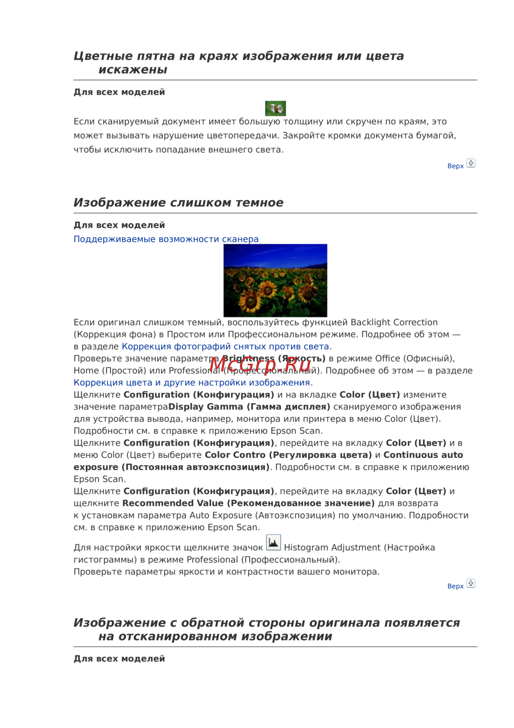 Epson Stylus TX219 — решение проблем с цветопередачей и яркостью при сканировании [129/132]