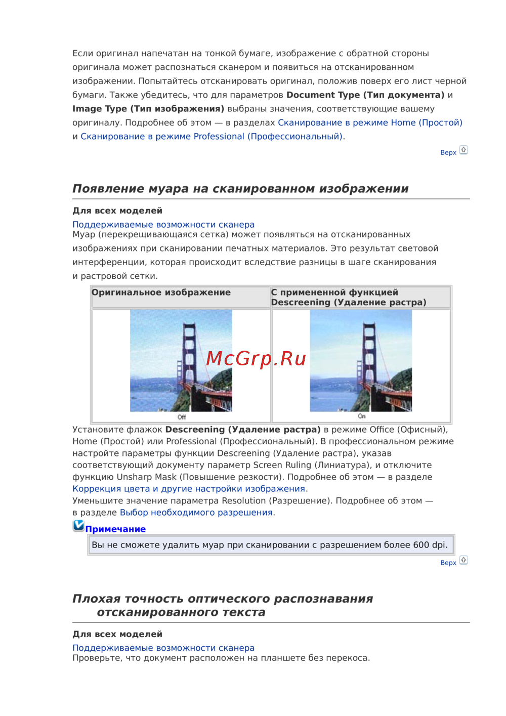 Муар (перекрещивающаяся сетка) может появляться на отсканированных
