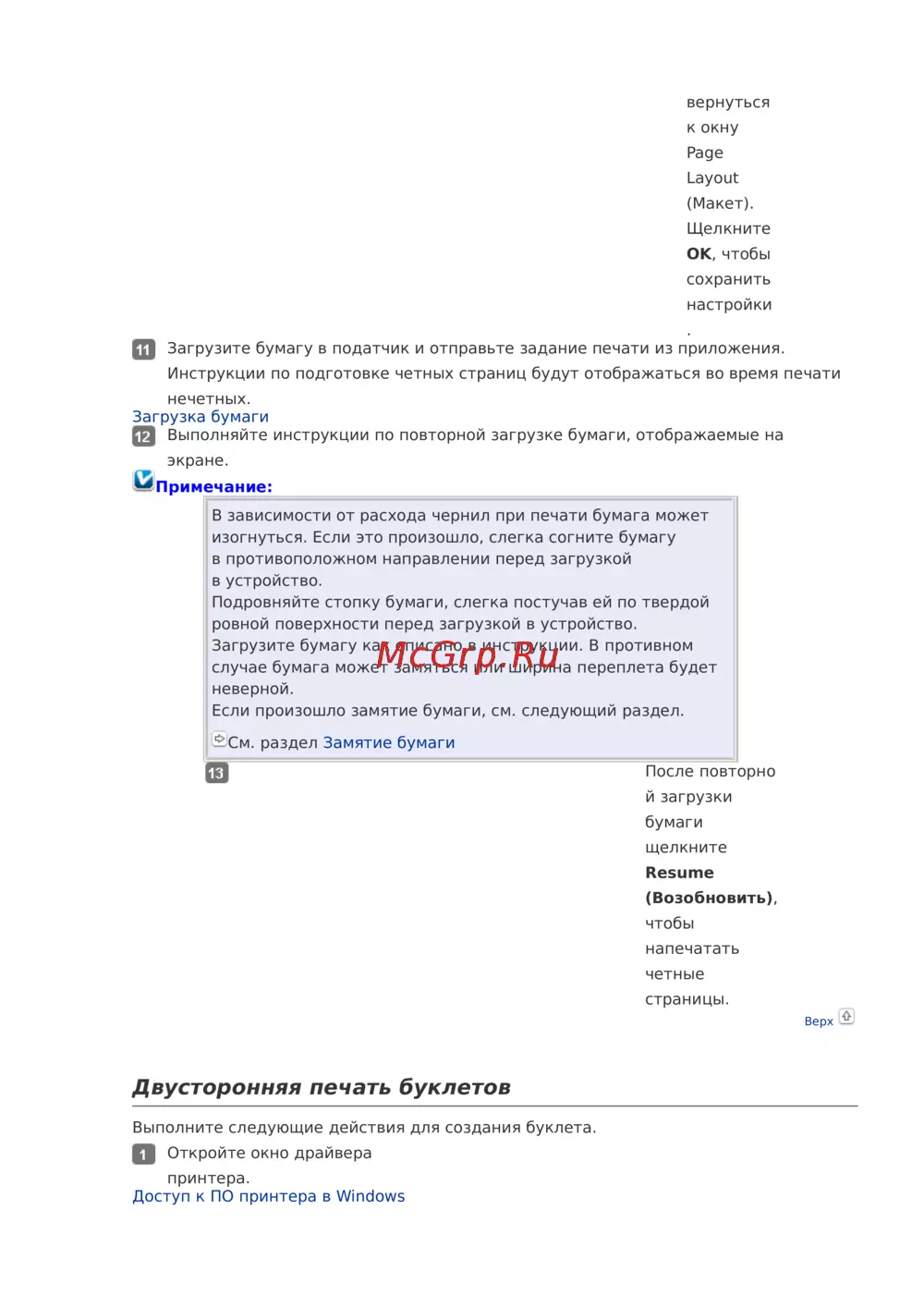 Инструкции по подготовке четных страниц будут отображаться во время печати