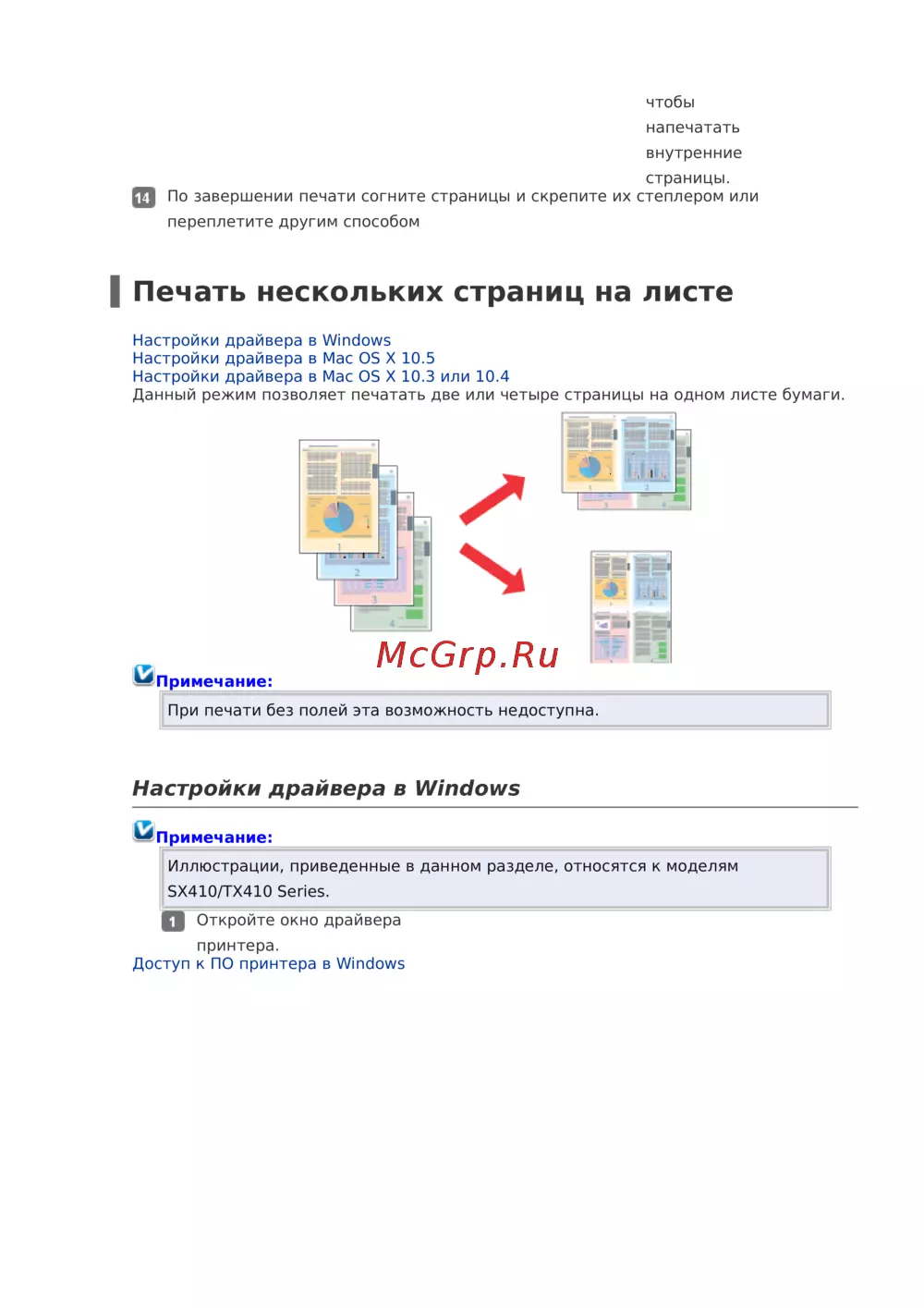 Данный режим позволяет печатать две или четыре страницы на одном листе бумаги.