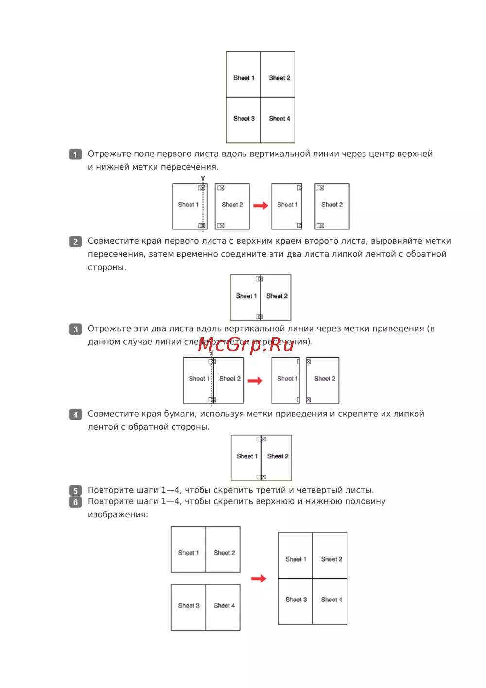 Epson Stylus TX219 — как правильно скрепить листы бумаги для создания изображения [31/132]
