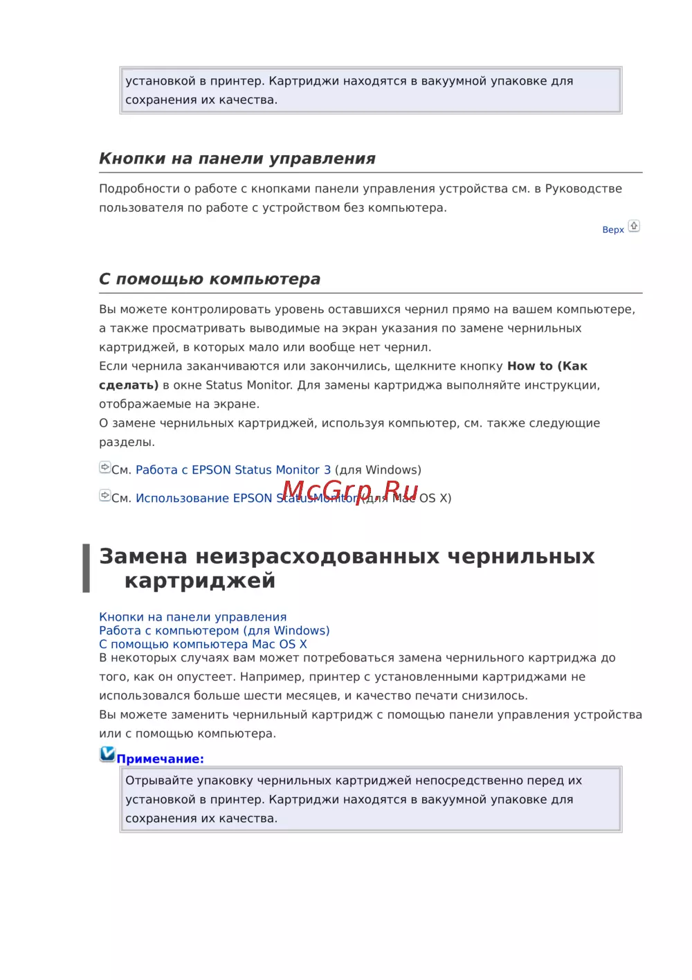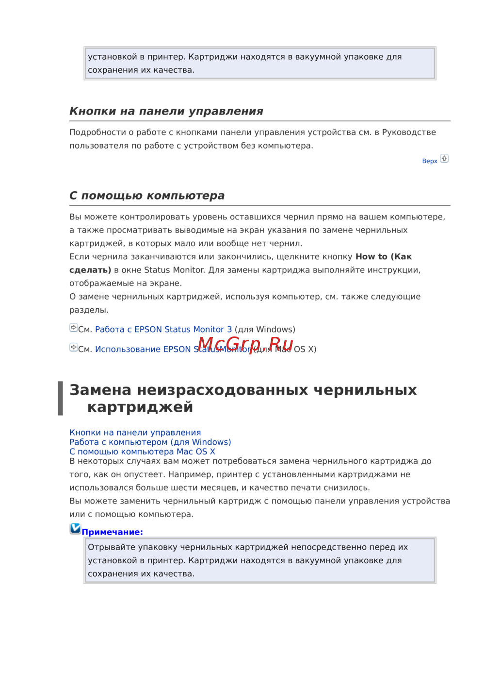 - Замена неизрасходованных чернильных картриджей p.41