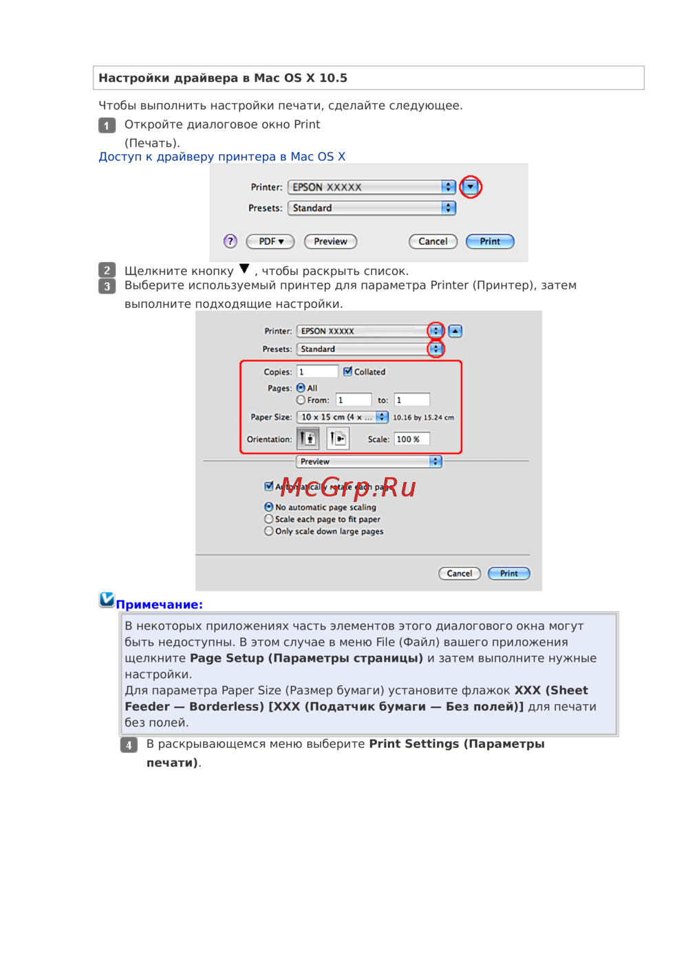 - Настройки драйвера в mac os x 10 или 10 p.25