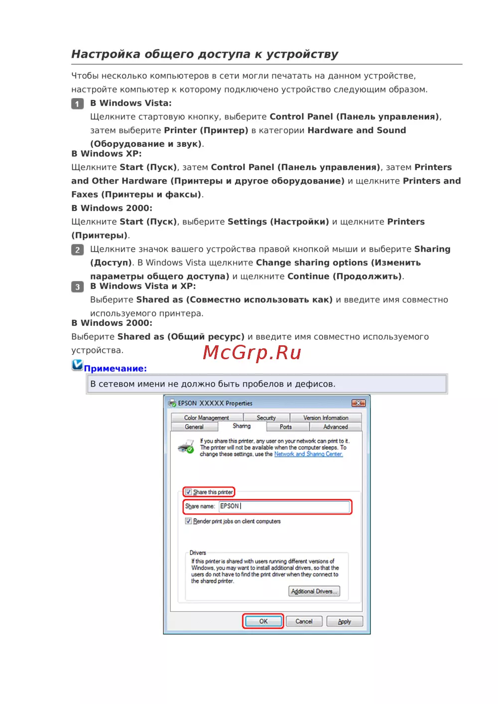 Epson Stylus TX219 [51/132] Настройка общего доступа к устройству