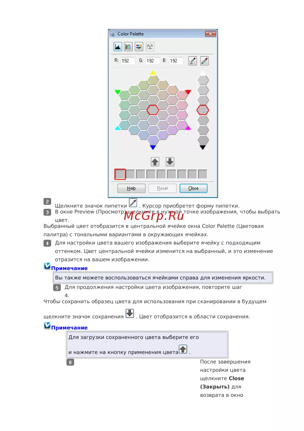Чтобы сохранить образец цвета для использования при сканировании в будущем