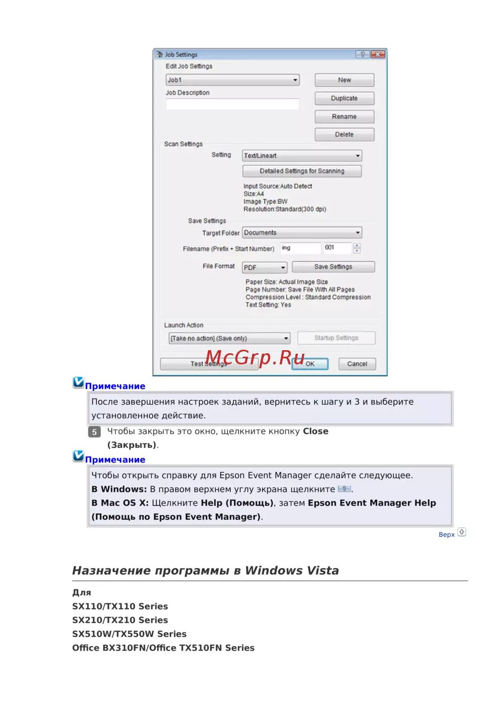 (Помощь по Epson Event Manager).