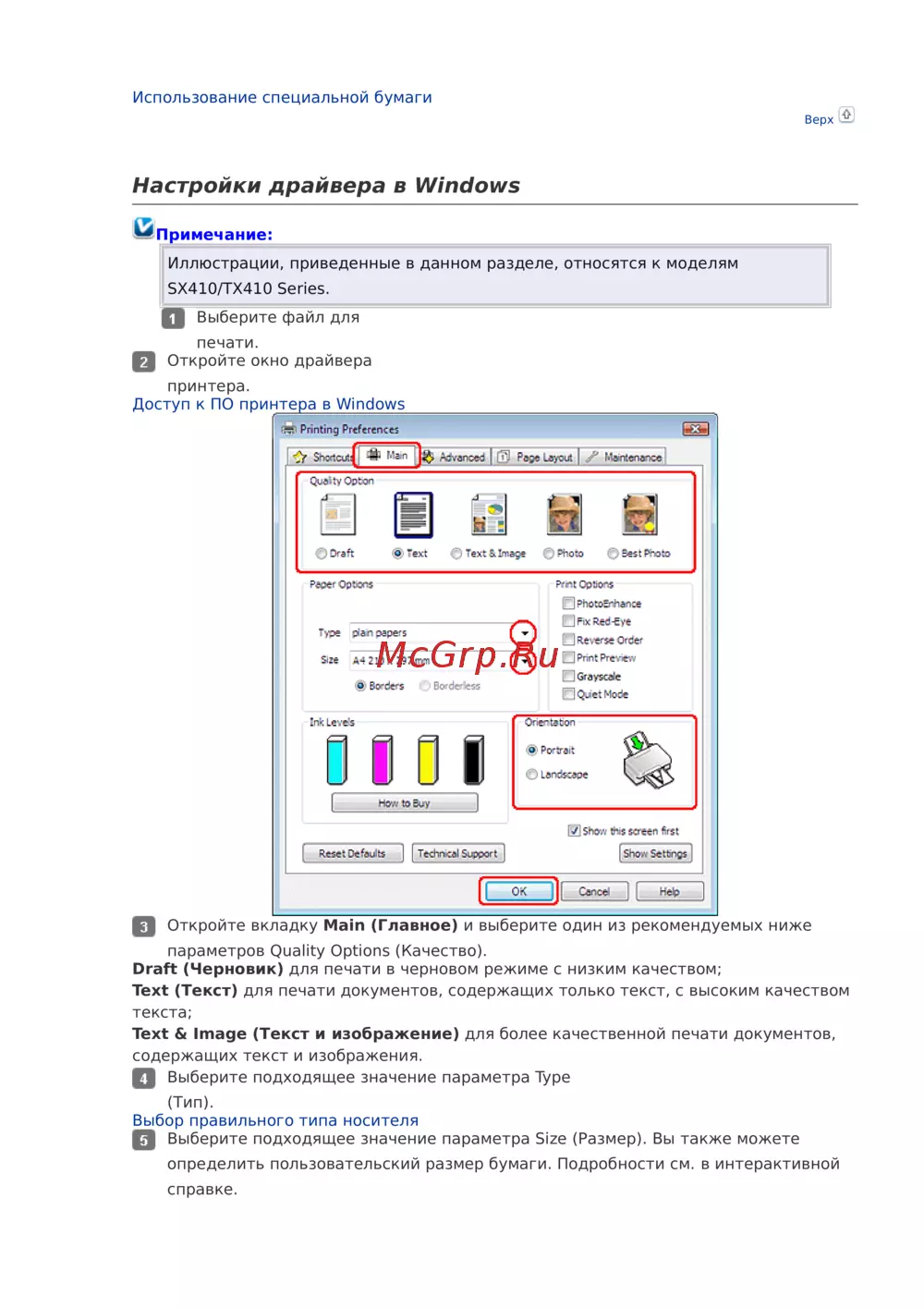 Draft (Черновик) для печати в черновом режиме с низким качеством;