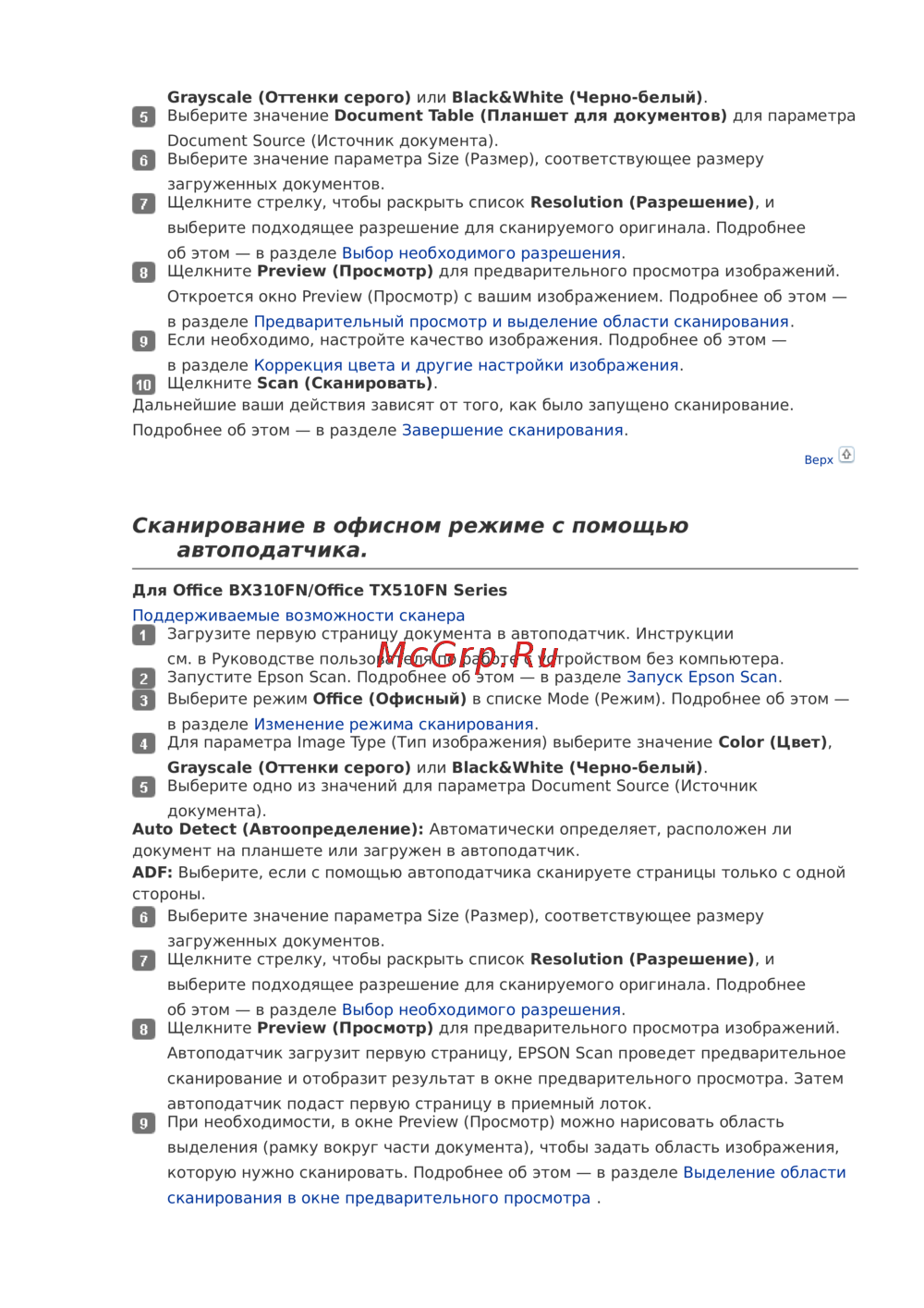 - Сканирование в офисном режиме с помощью автоподатчика p.96