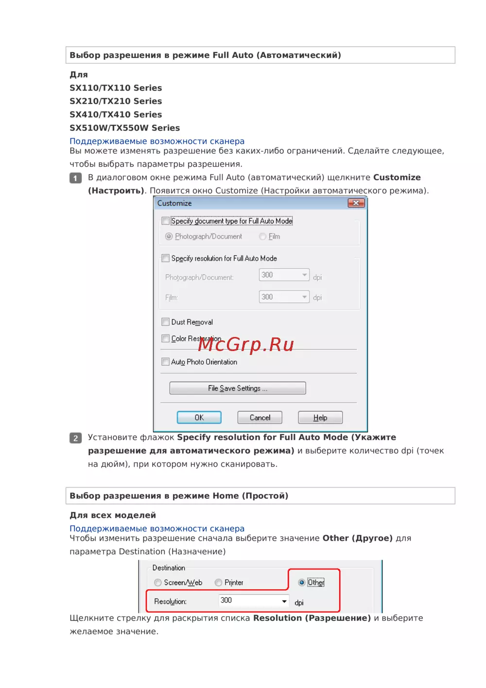 разрешение для автоматического режима) и выберите количество dpi (точек