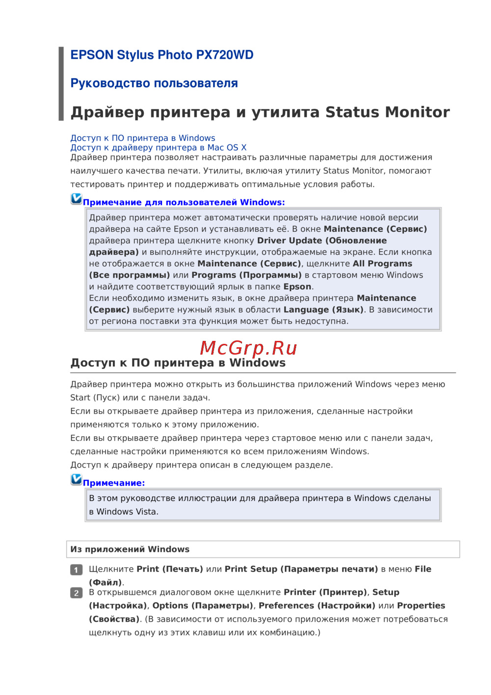 Epson Stylus Photo PX720WD — драйвер принтера и утилиты: руководство пользователя [1/92]