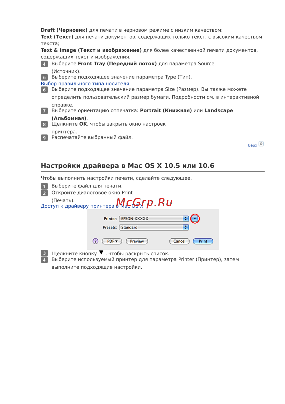 Доступ к драйверу принтера в Mac OS X