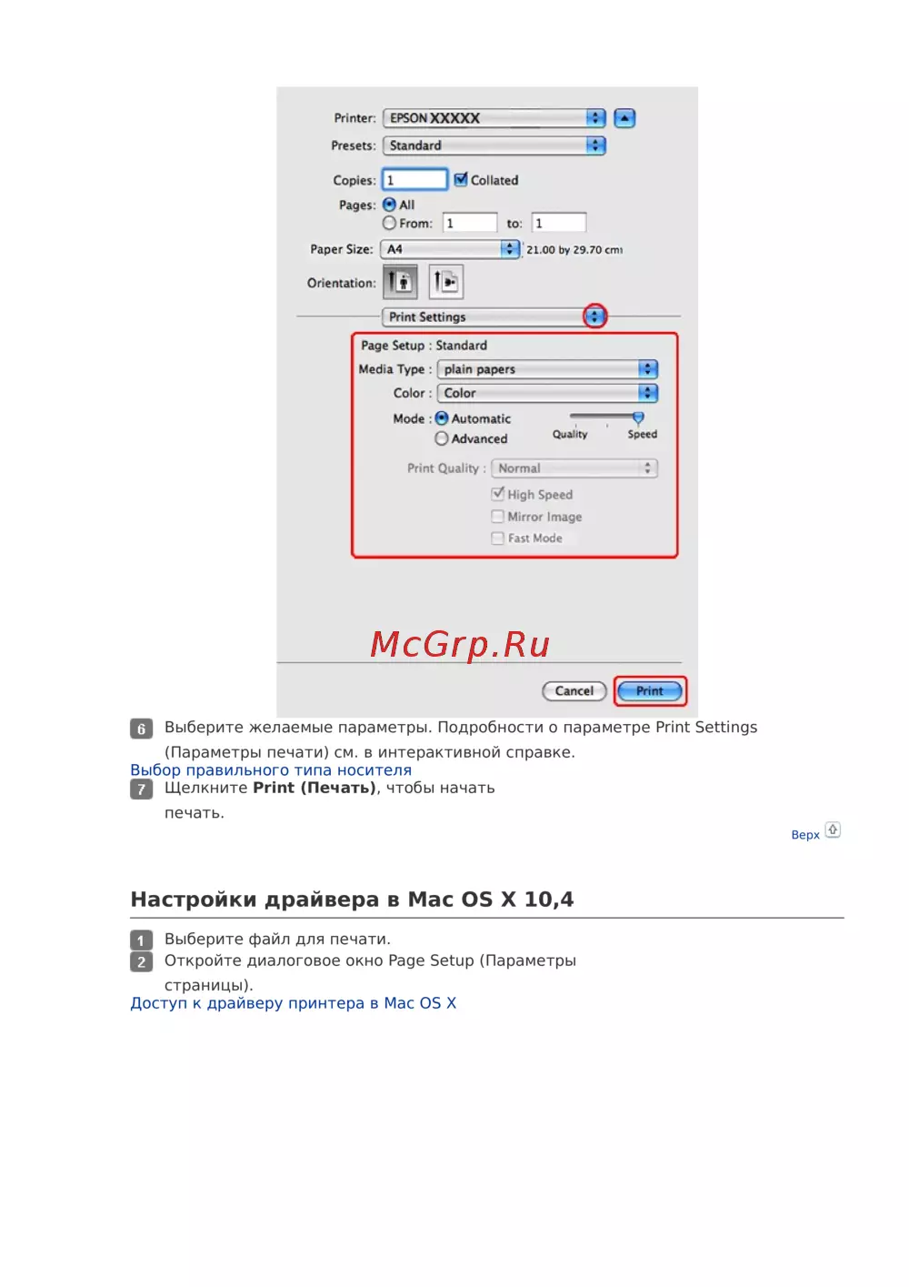 - Настройки драйвера в mac os x 10 или 10 p.26