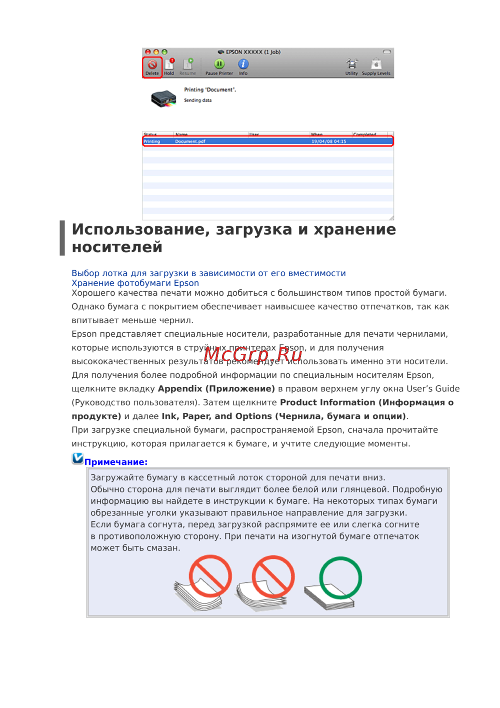 Epson Stylus Photo PX720WD [32/92] Использование загрузка и хранение носителей
