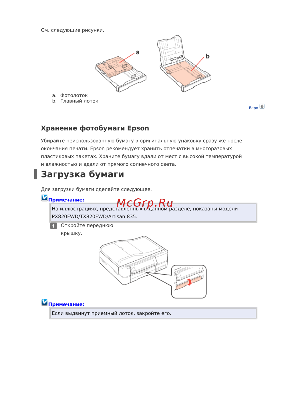 - Выбор лотка для загрузки в зависимости от его вместимости p.33