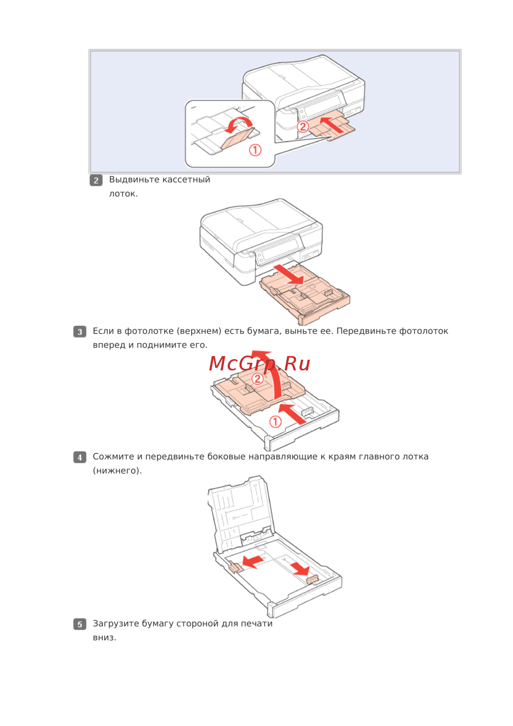 Сожмите и передвиньте боковые направляющие к краям главного лотка