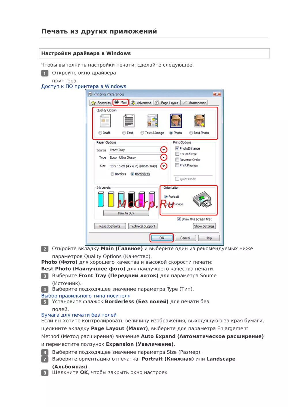 Epson Stylus Photo PX720WD [7/92] Печать из других приложений