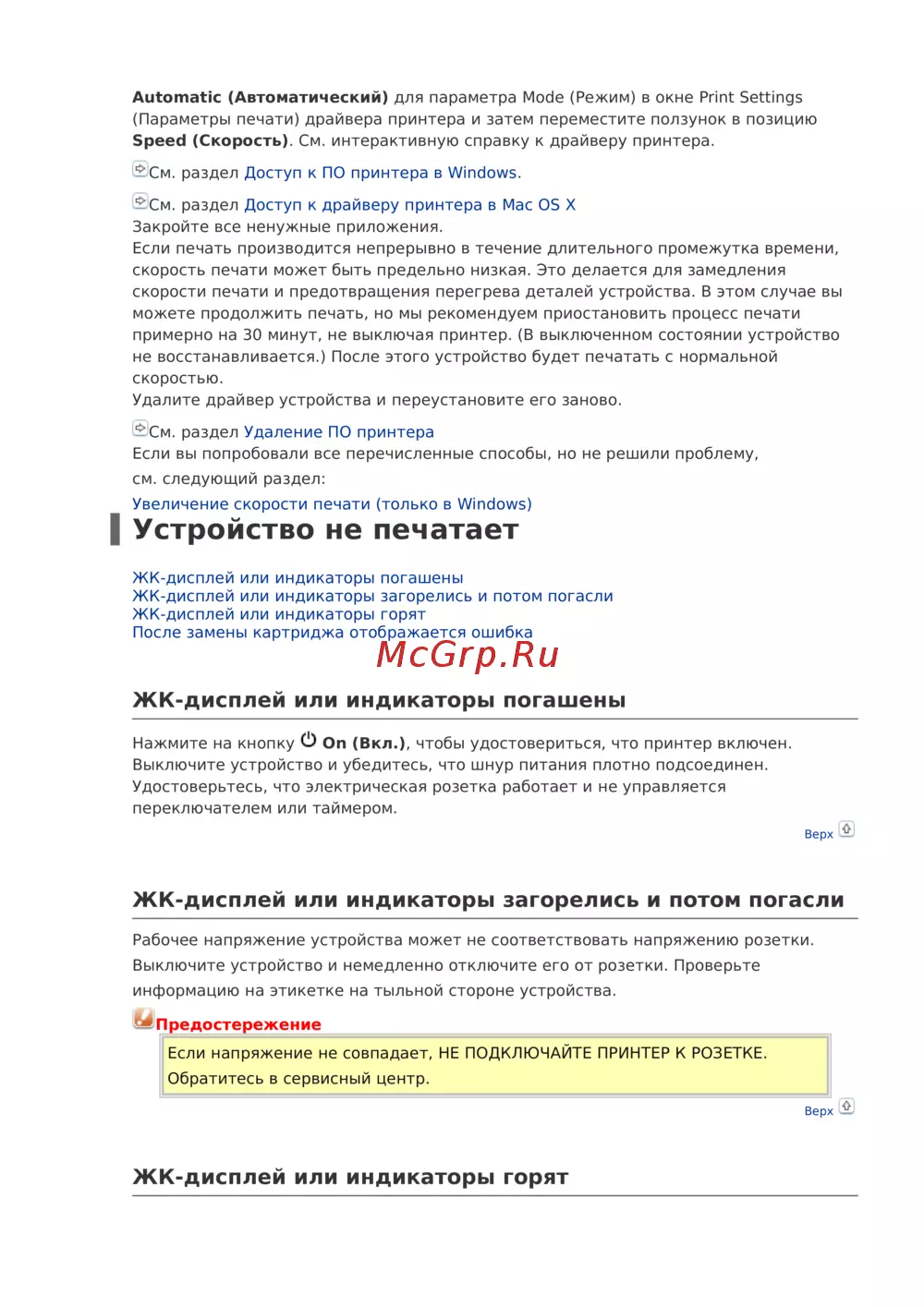 не восстанавливается.) После этого устройство будет печатать с нормальной