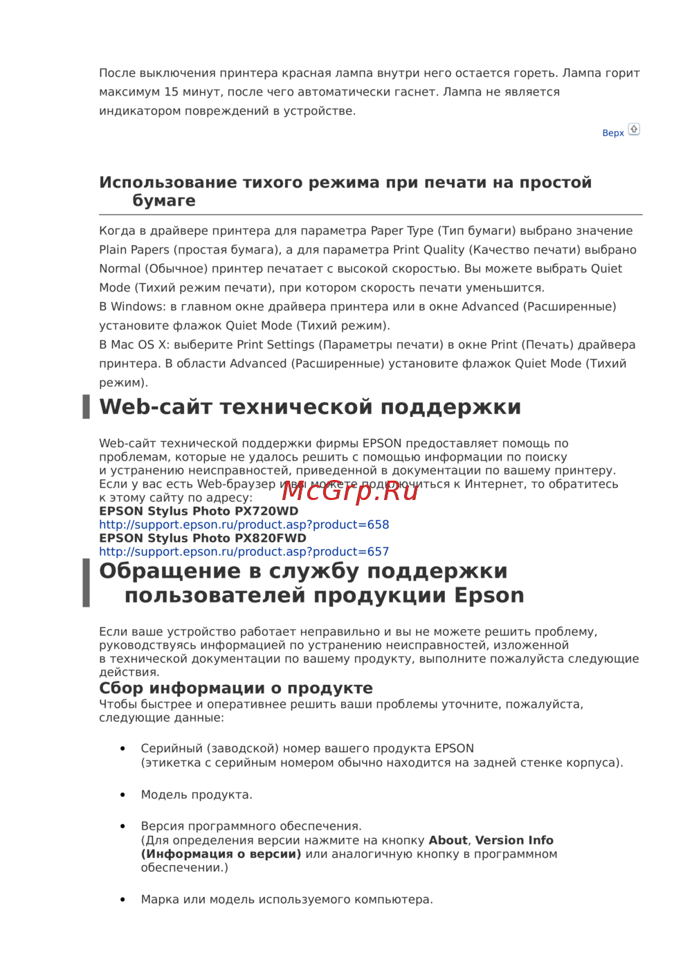Epson Stylus Photo PX720WD [91/92] Обращение в службу поддержки