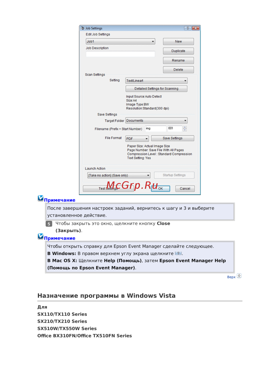 Epson Stylus TX117 [117/177] Назначение программы в windows vista
