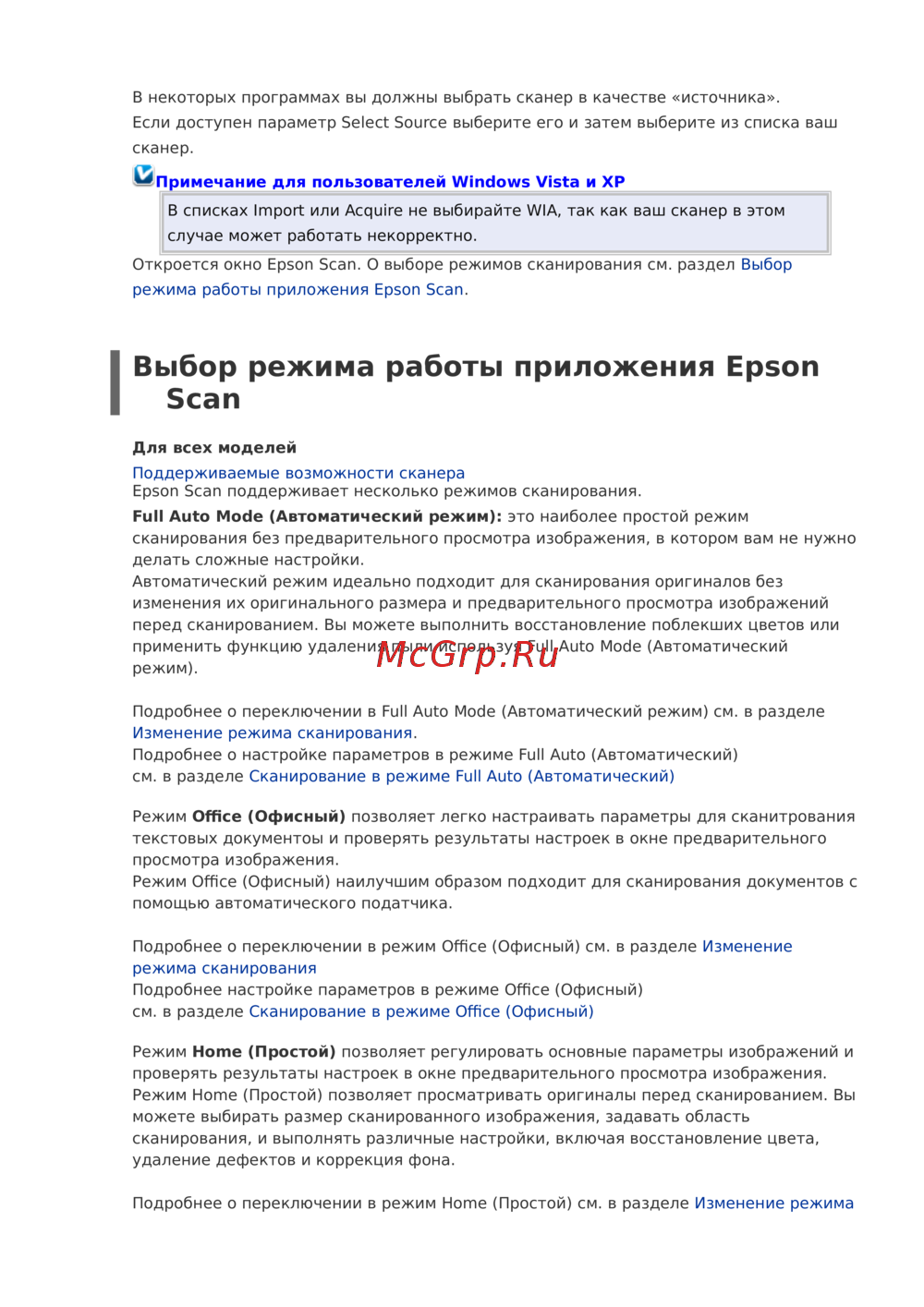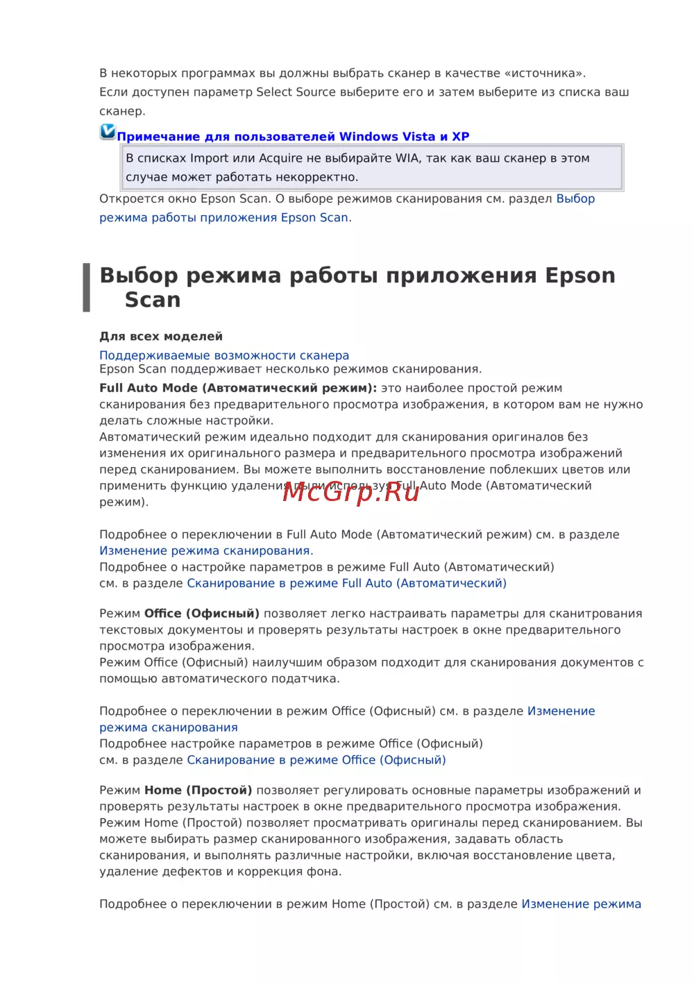 Epson Scan поддерживает несколько режимов сканирования.