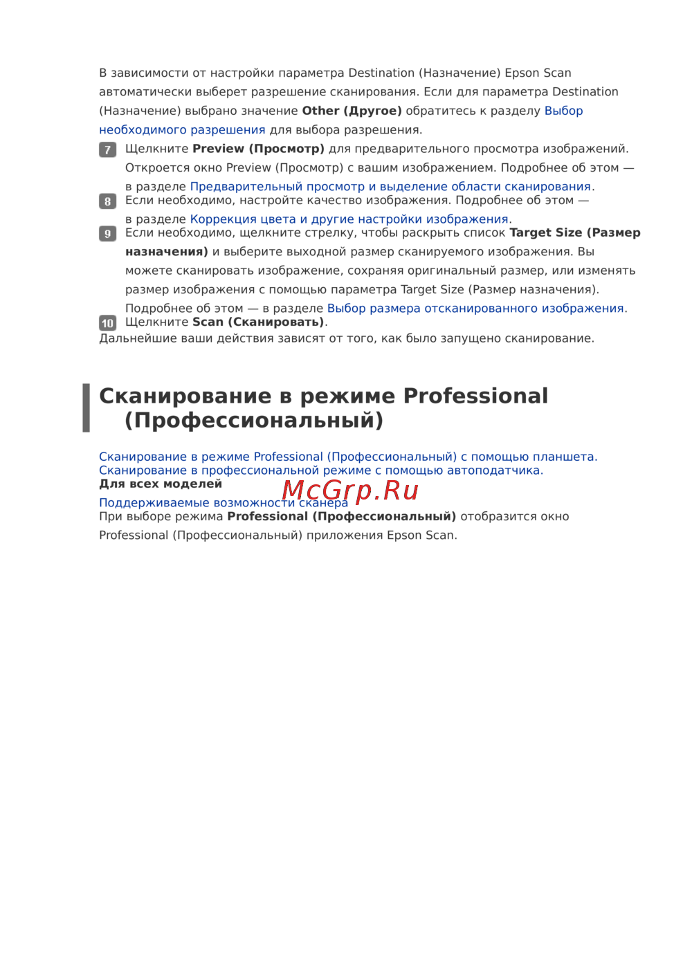 - Выбор размера отсканированного изображения p.156