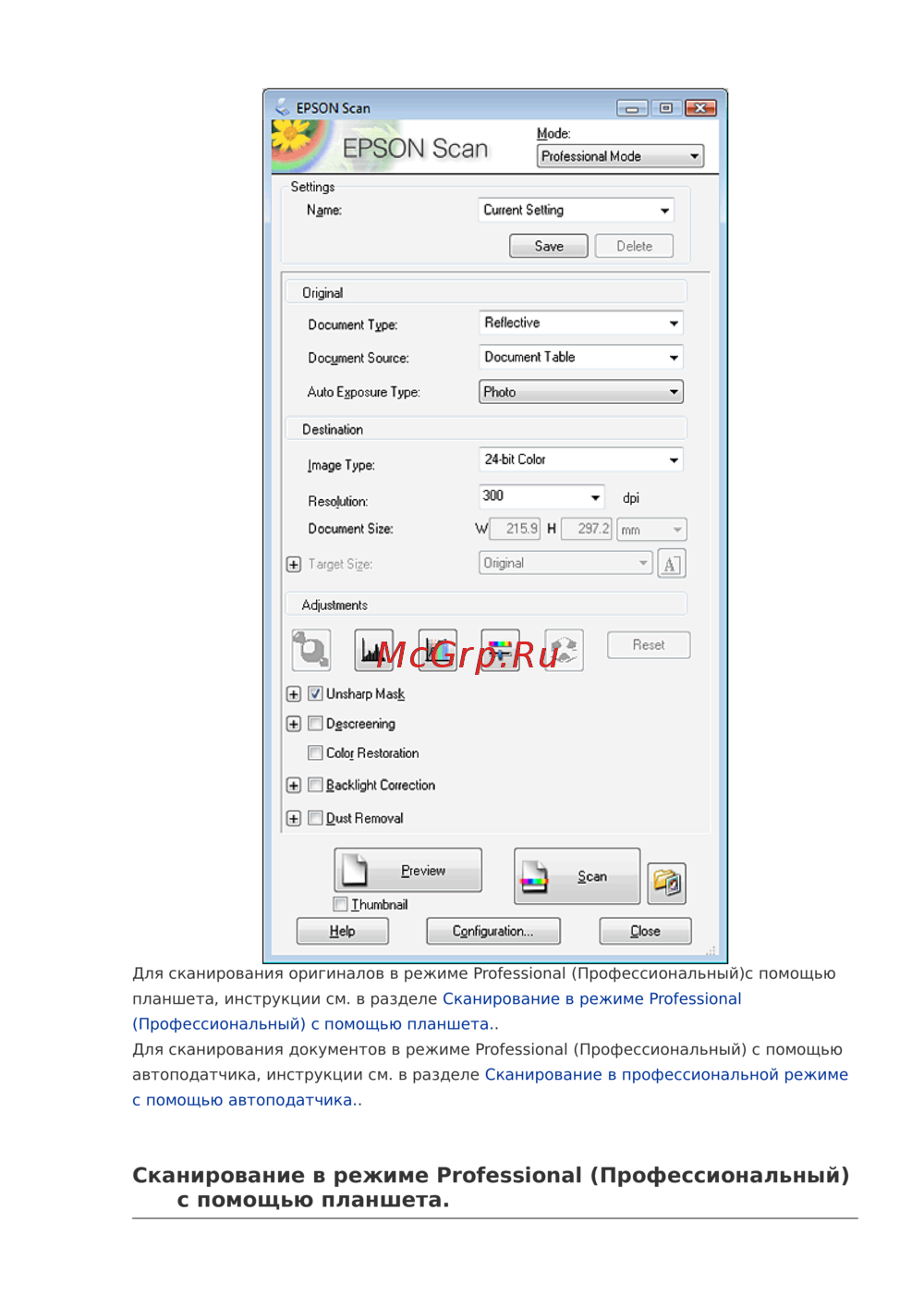 - Сканирование в режиме professional профессиональный с помощью планшета p.133