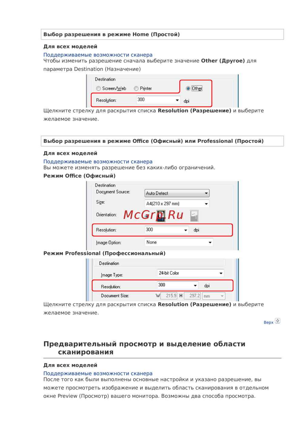 - Выбор размера отсканированного изображения в режиме home простой p.157
