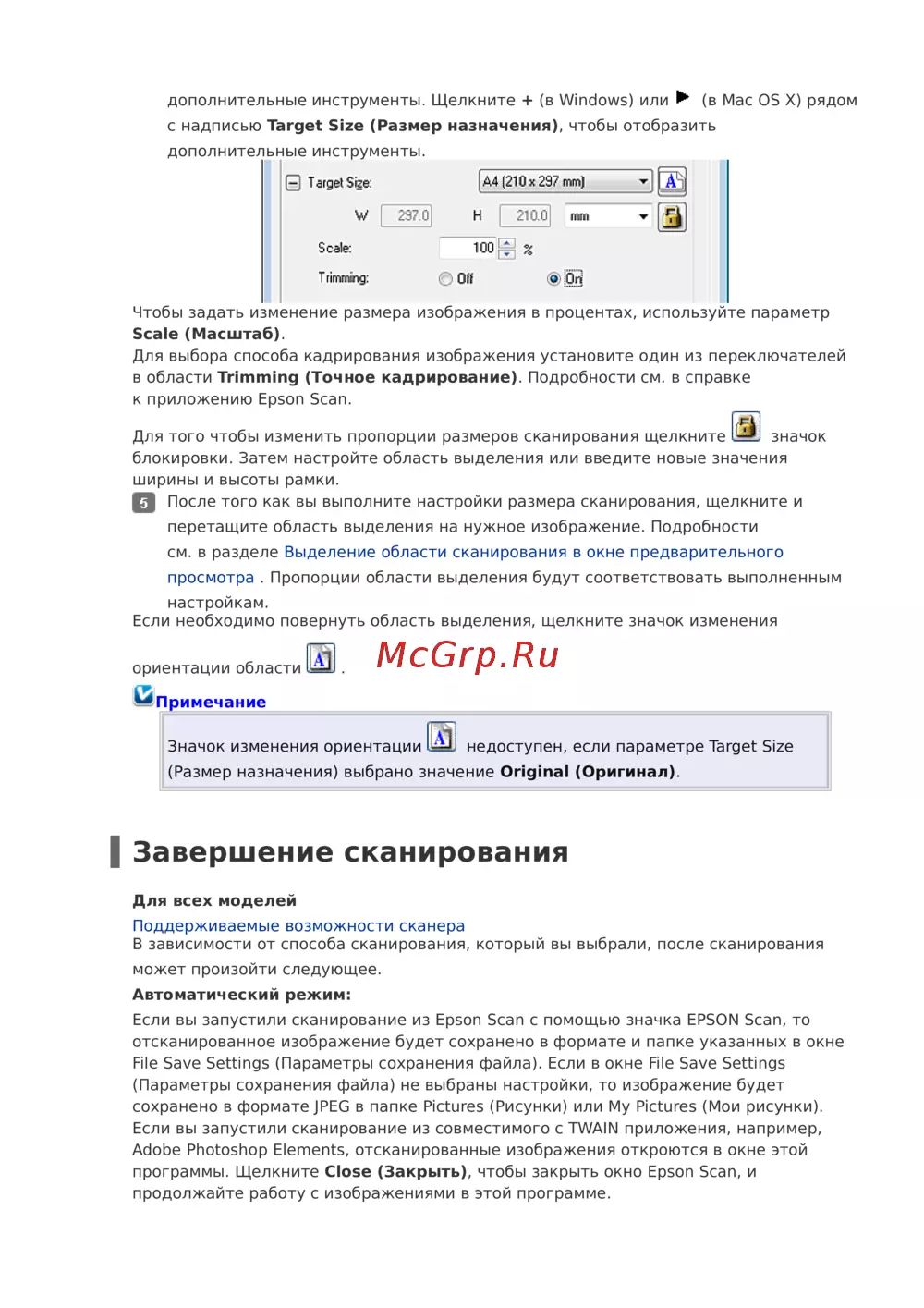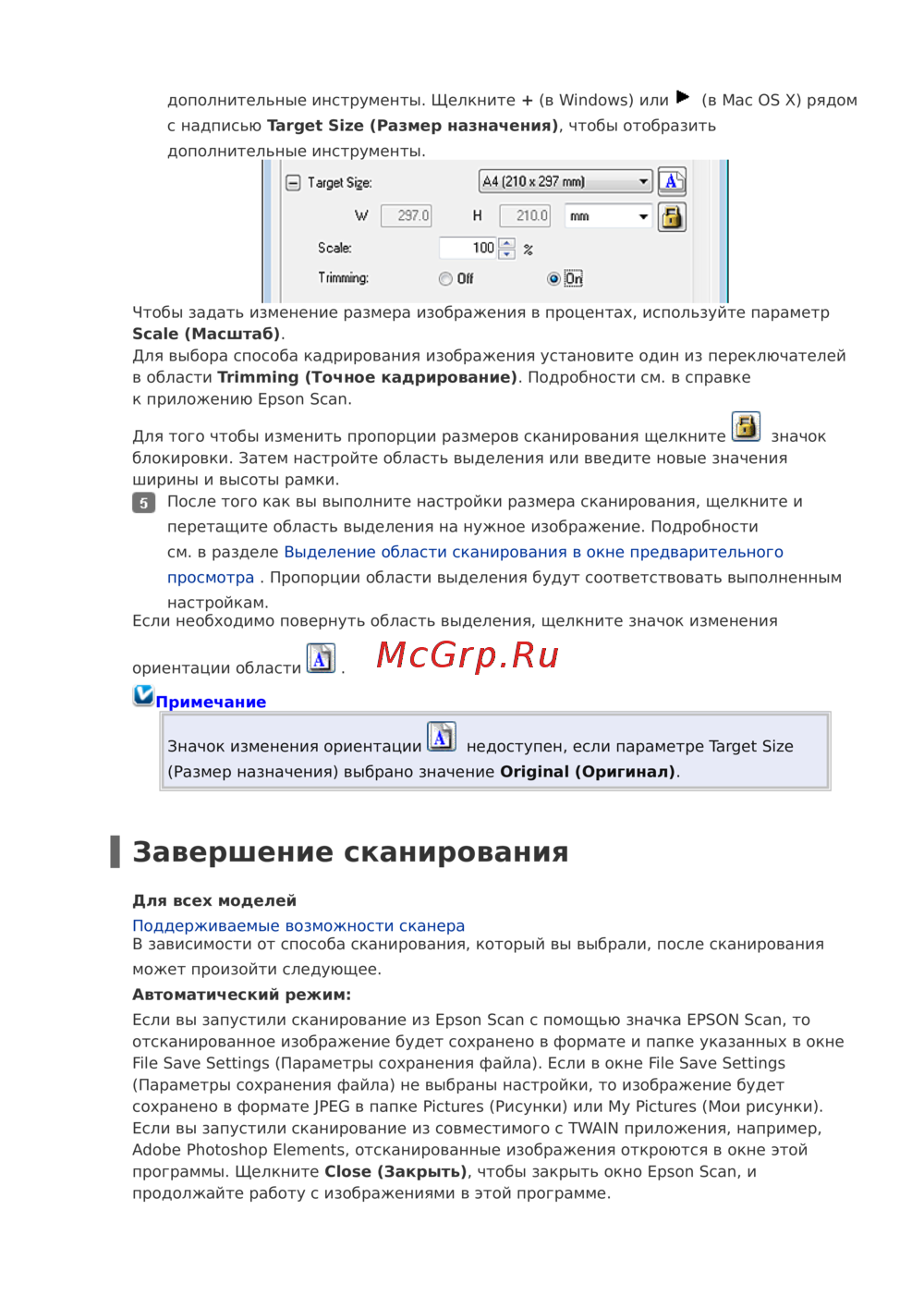 - Выбор размера отсканированного изображения в режиме home простой p.157