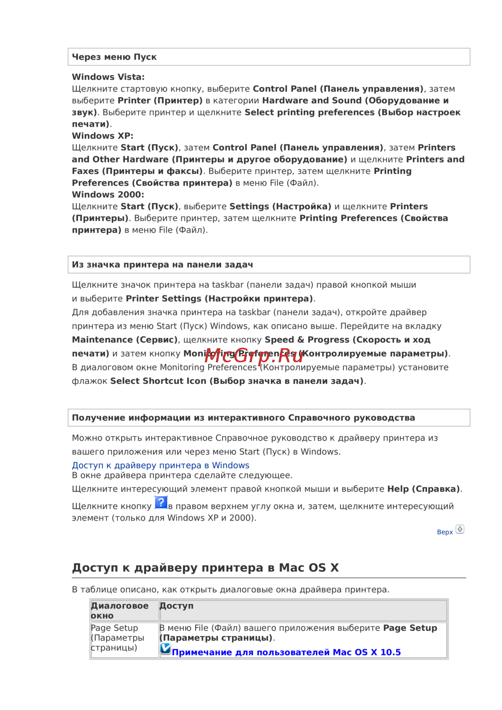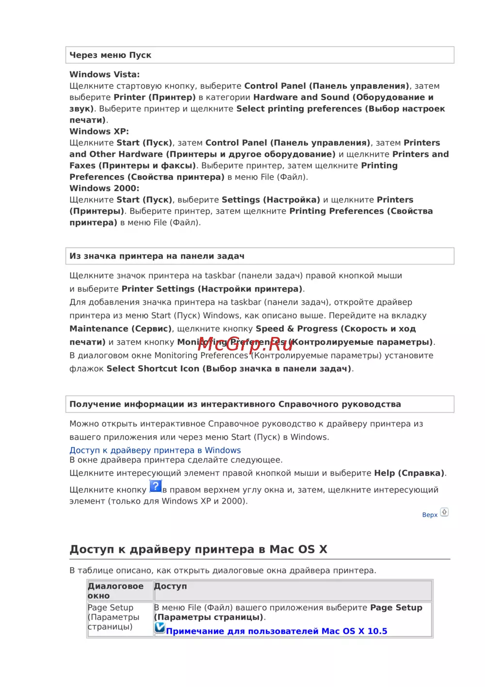 Можно открыть интерактивное Справочное руководство к драйверу принтера из