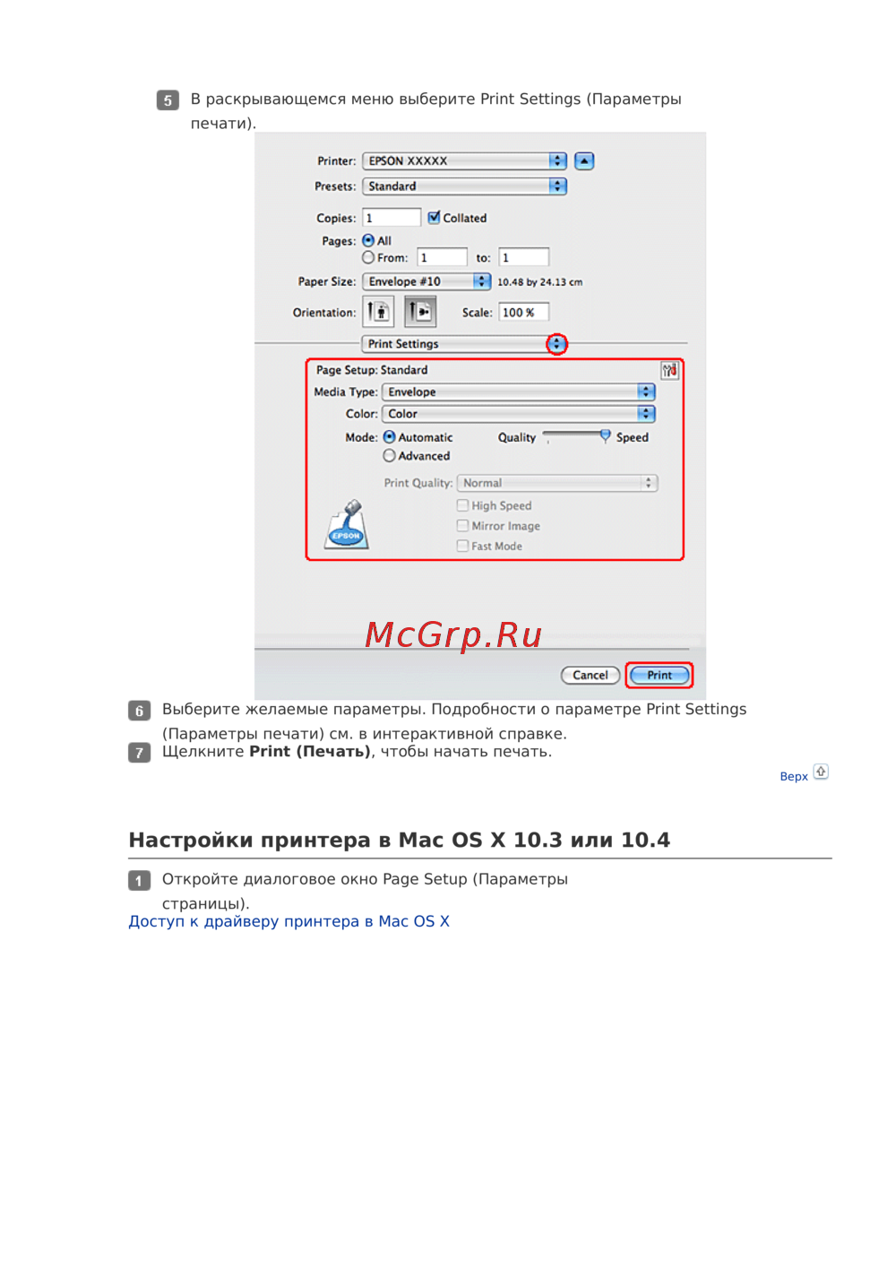 - Настройки принтера в mac os x 10 или 10 p.22