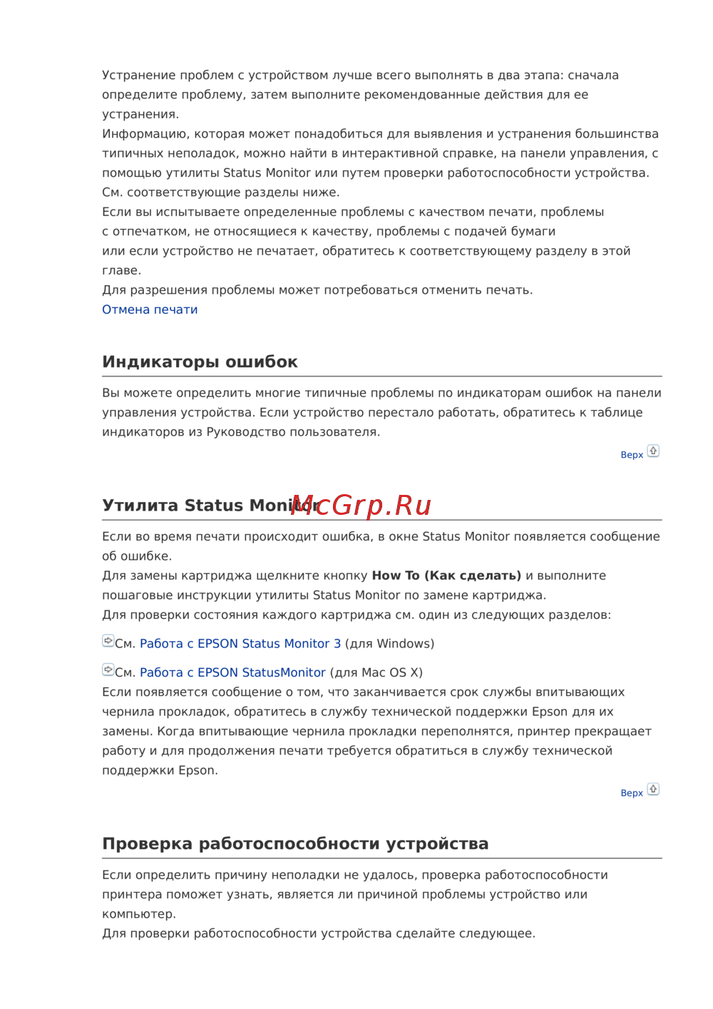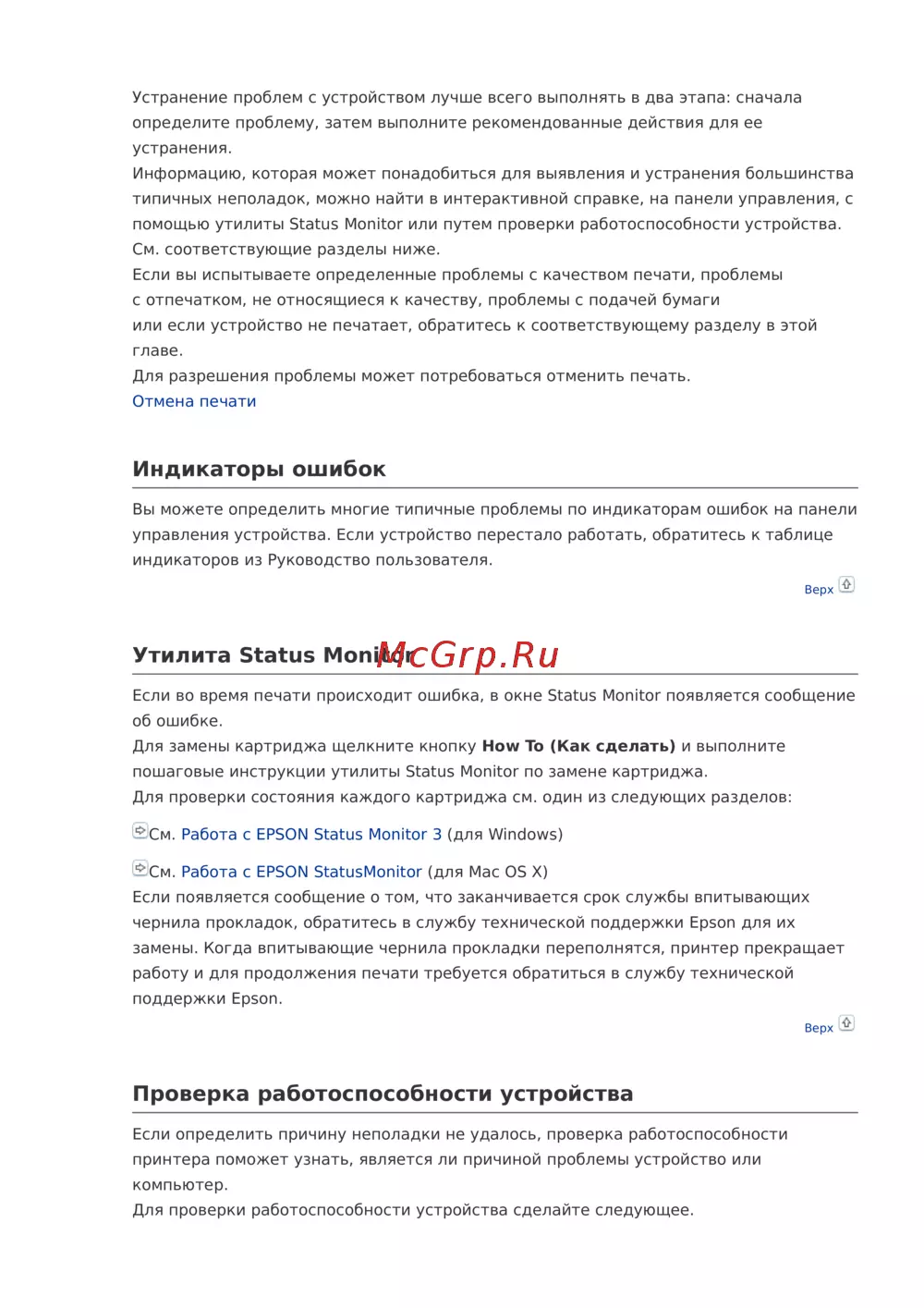 или если устройство не печатает, обратитесь к соответствующему разделу в этой