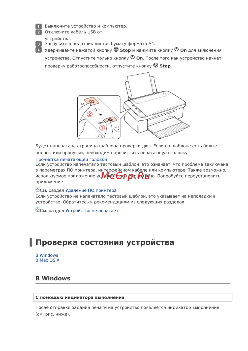 Если устройство не напечатало тестовый шаблон, это указывает на неполадки в