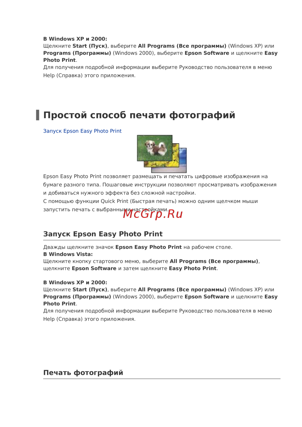 щелкните Epson Software и затем щелкните Easy Photo Print.