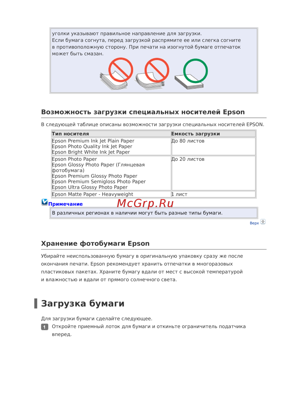 Если бумага согнута, перед загрузкой распрямите ее или слегка согните