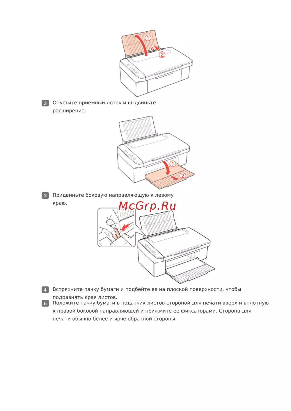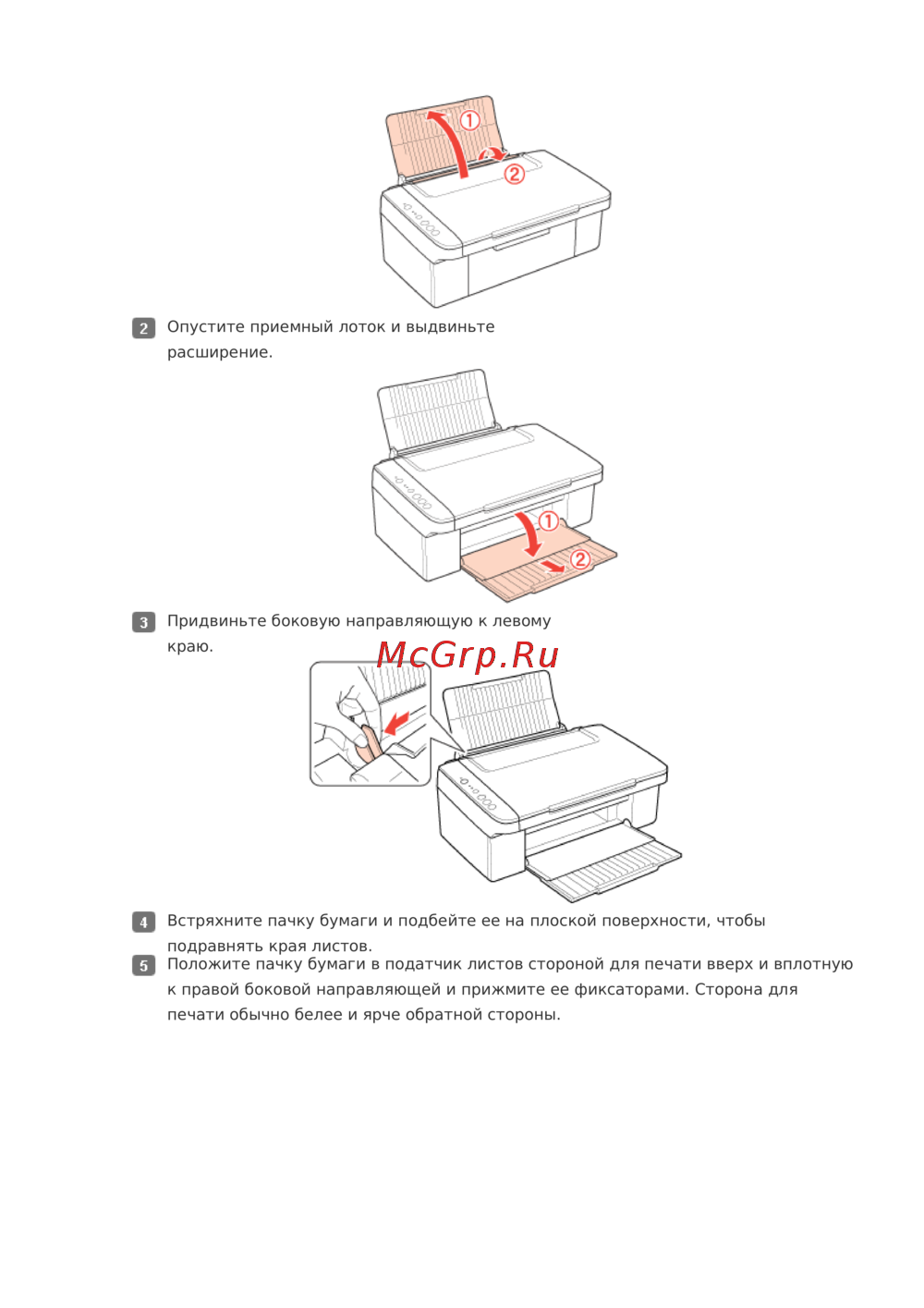 Положите пачку бумаги в податчик листов стороной для печати вверх и вплотную
