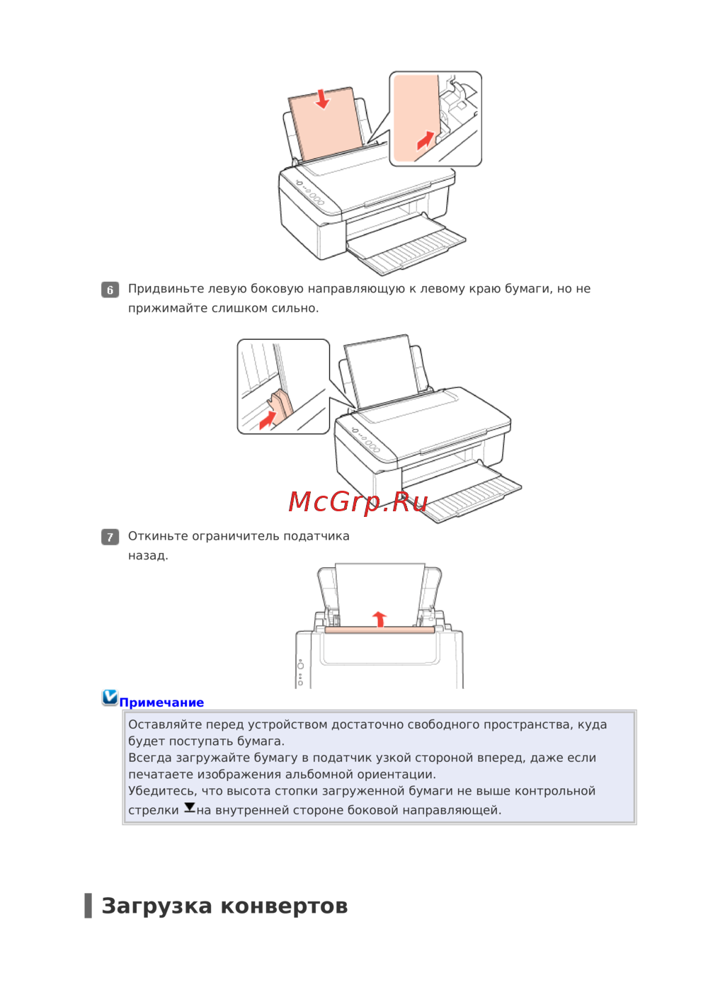 Всегда загружайте бумагу в податчик узкой стороной вперед, даже если