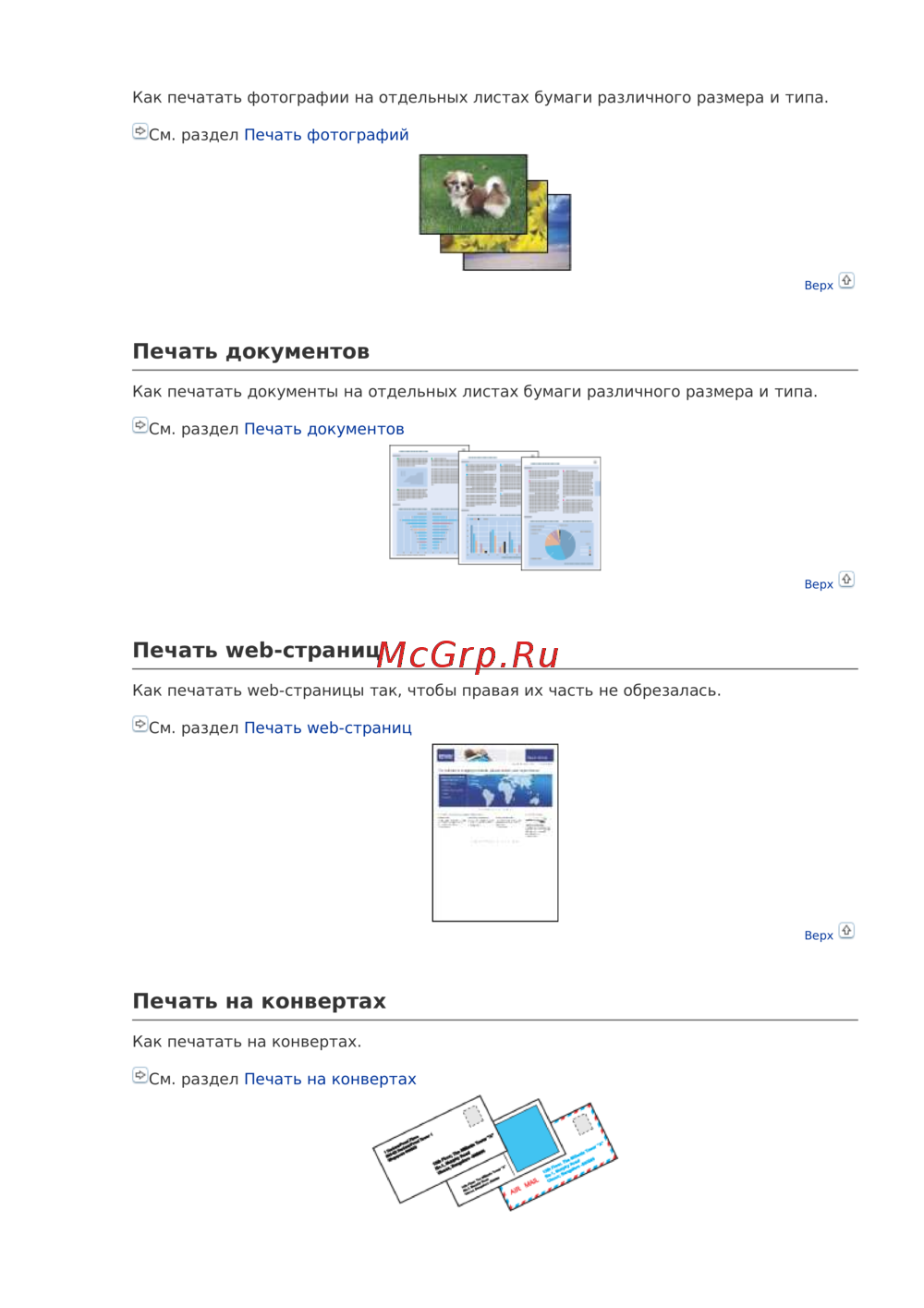 Как печатать фотографии на отдельных листах бумаги различного размера и типа.