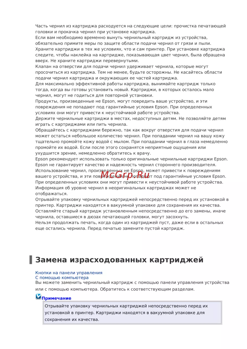 Использование чернил, произведенных не Epson, может привести к повреждениям