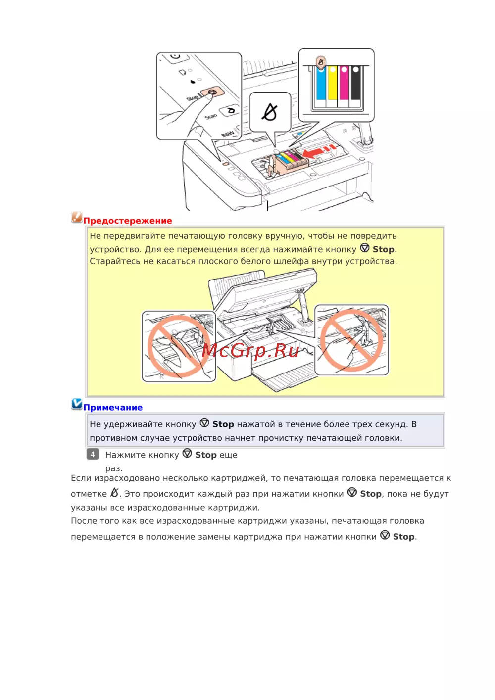 Если израсходовано несколько картриджей, то печатающая головка перемещается к