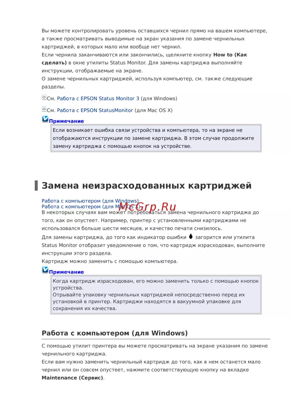 сделать) в окне утилиты Status Monitor. Для замены картриджа выполняйте