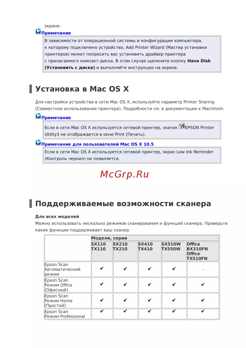 Epson Stylus TX117 [69/177] Поддерживаемые возможности сканера