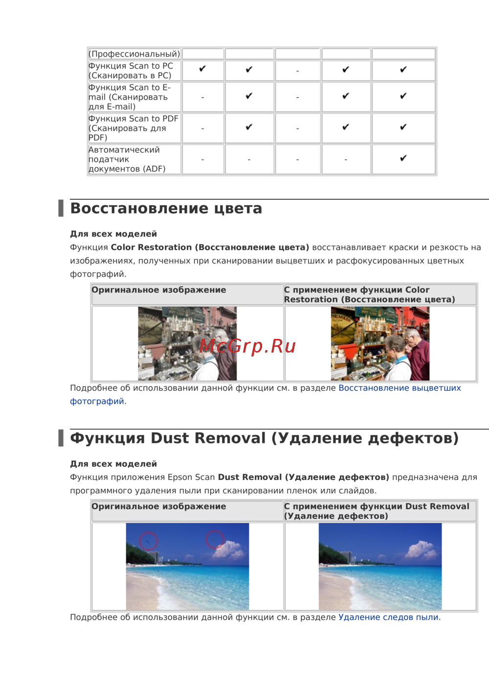 Функция приложения Epson Scan Dust Removal (Удаление дефектов) предназначена для