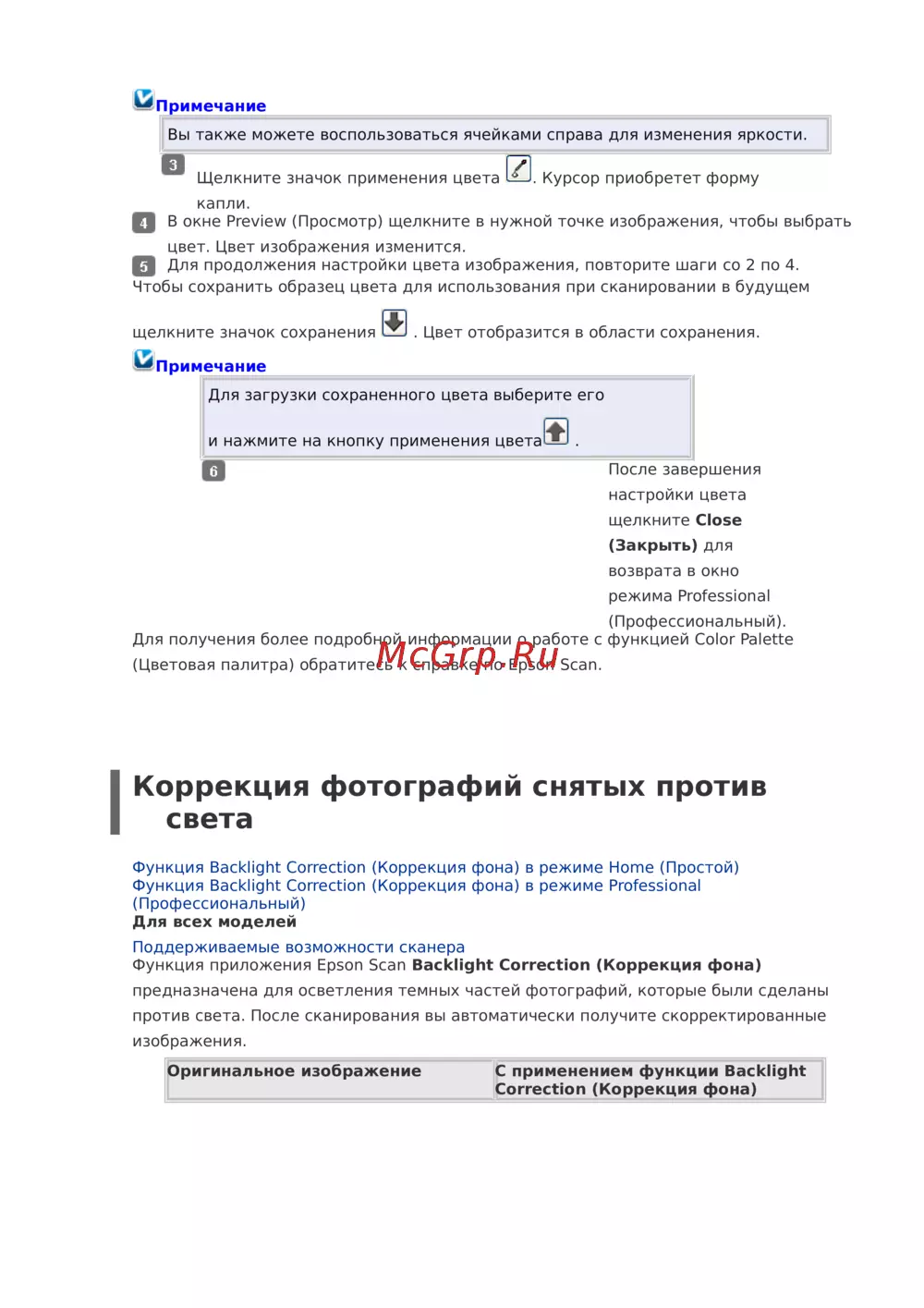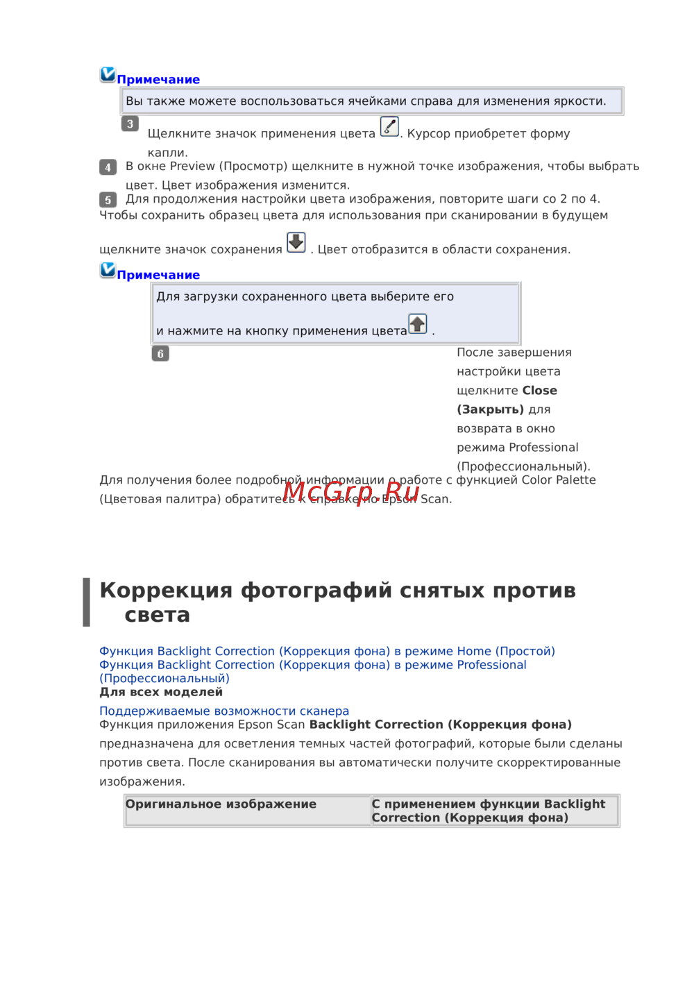 Функция приложения Epson Scan Backlight Correction (Коррекция фона)