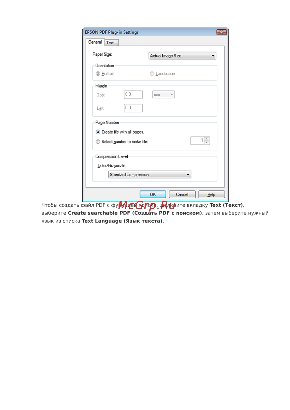 Чтобы создать файл PDF с функцией поиска, щелкните вкладку Text (Текст),