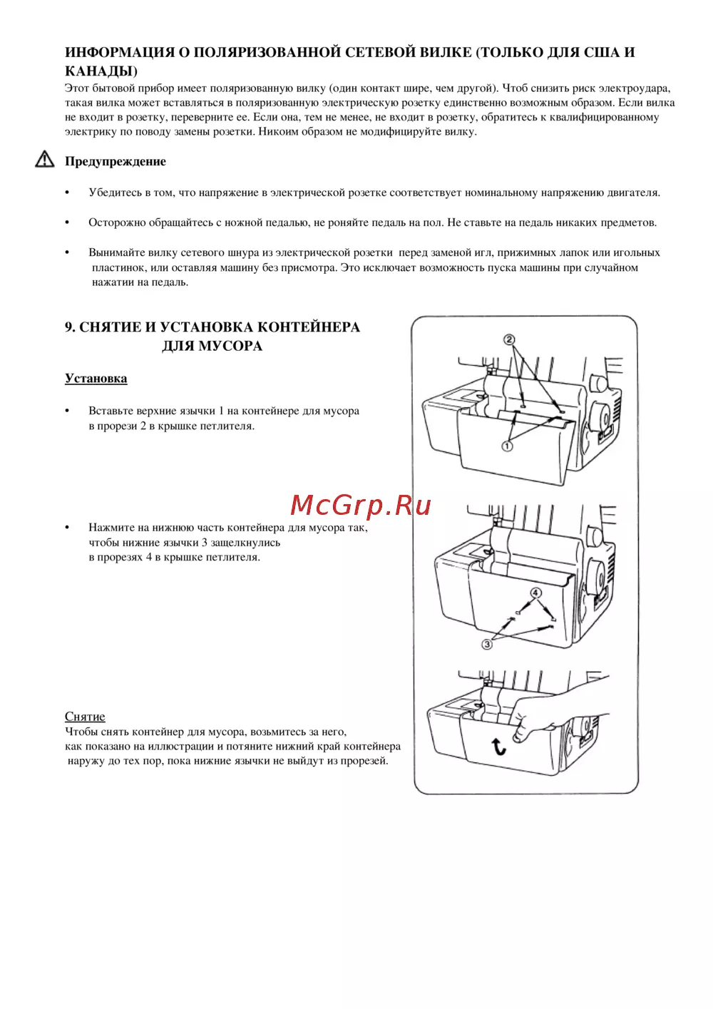 - Информация о поляризованной сетевой вилке только для сша и канады p.22