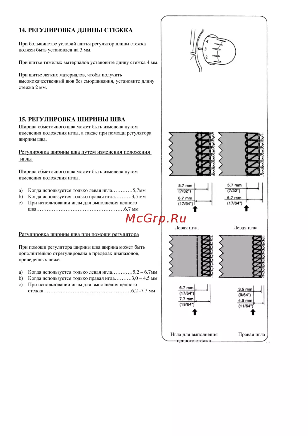- Регулировка ширины шва путем изменения положения иглы p.54