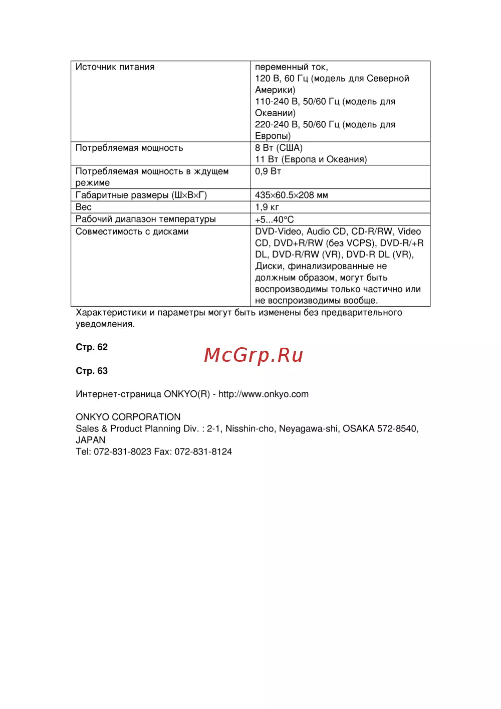Интернет-страница ONKYO(R) - http://www.onkyo.com