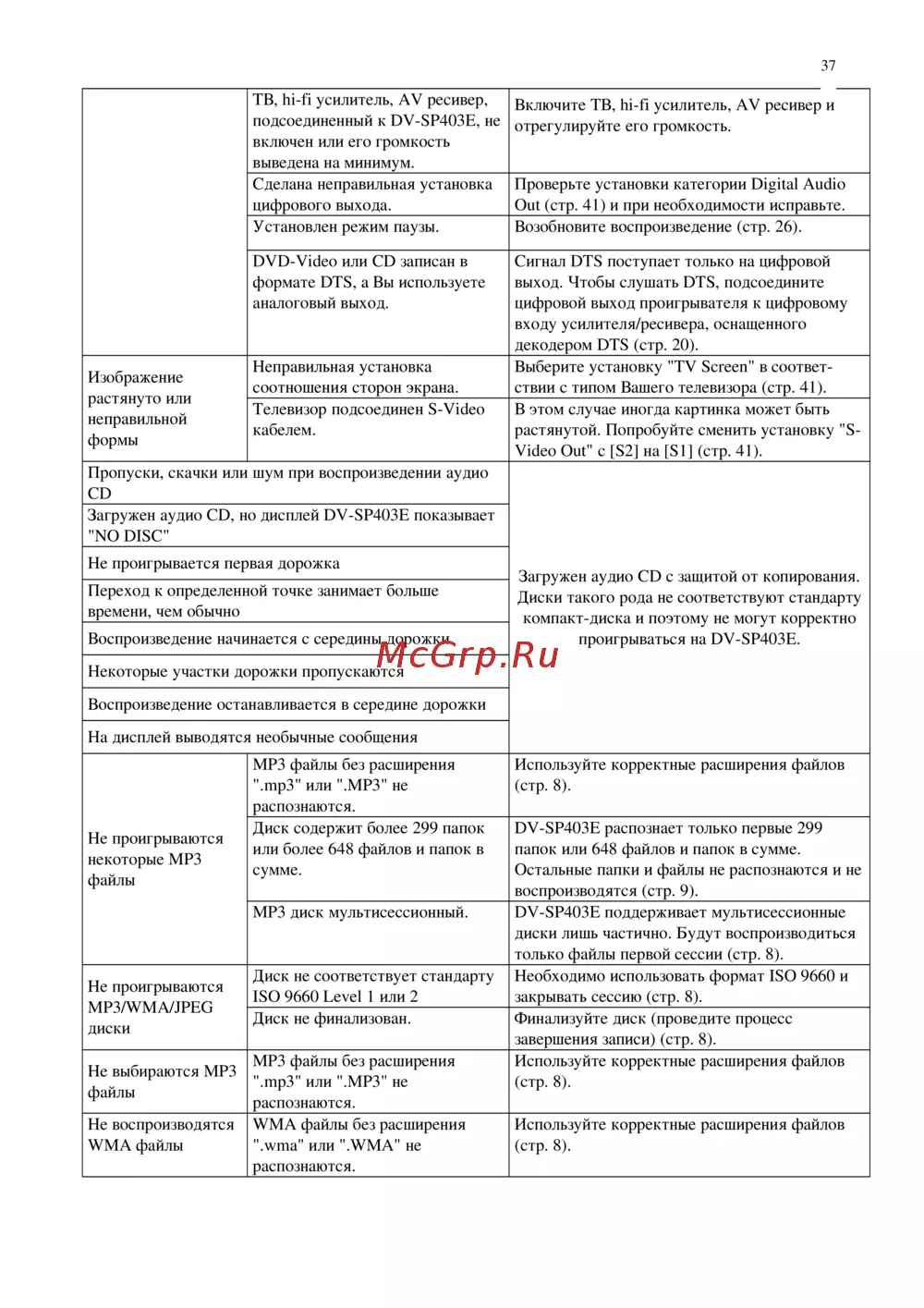 Onkyo DV-SP403E — решение проблем с воспроизведением аудио и видео устройств [37/42]